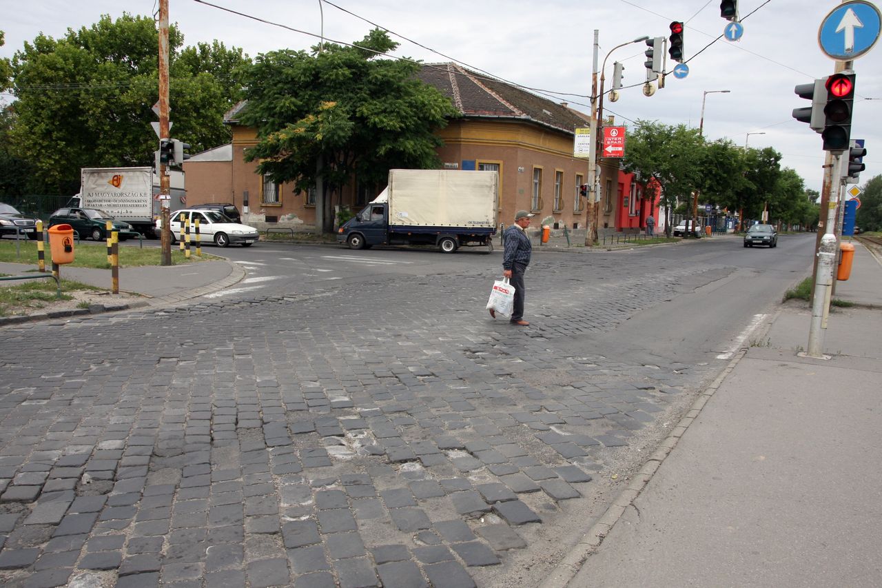 A kereszteződés útburkolata már több évtizede bazalt kockakő, és a forgalom miatt, a járművek gumiabroncsával érintkező felülete fényesre kopott. Az ilyen felületen az útburkolati jelek felújítására a Magyarországon használatos festékanyagok közül az ún. oldószeres festék alkalmazható a legnagyobb hatékonysággal. A felújítást évente két alkalommal végezzük el, tavasszal és ősszel. A tavalyi évben a felújítást - anyagi források hiánya miatt - csak 2010. szeptember 26-án végeztük el. Az idei évi felújításra előreláthatólag a 27-28. héten kerül sor.