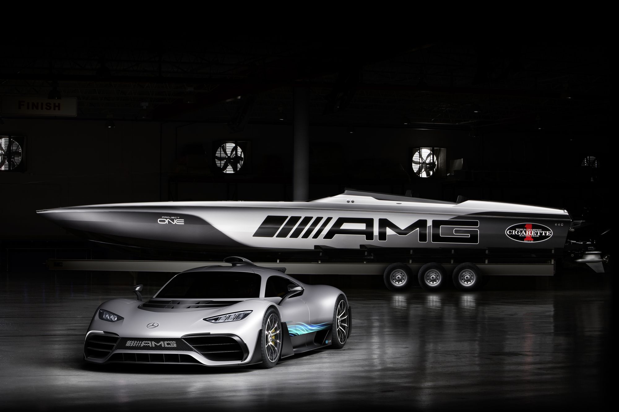 Már 11 éve tart a kapcsolat a Mercedes-AMG és a Cigarette Racing között. Ennyi idő alatt természetesen több hajót is bemutattak, amelyek valamilyen formában a csillagos márka termékeit juttatják az ember eszébe. Ezúttal a – Formula 1-ből átvett technológiát használó – Project One adta az inspirációt a hajó elkészítéséhez (vagy nevezzük inkább hatalmas motorcsónaknak). Persze az igazsághoz hozzá tartozik, hogy a dizájnon és a nevükön kívül nem találni semmi közöset a két járműben.