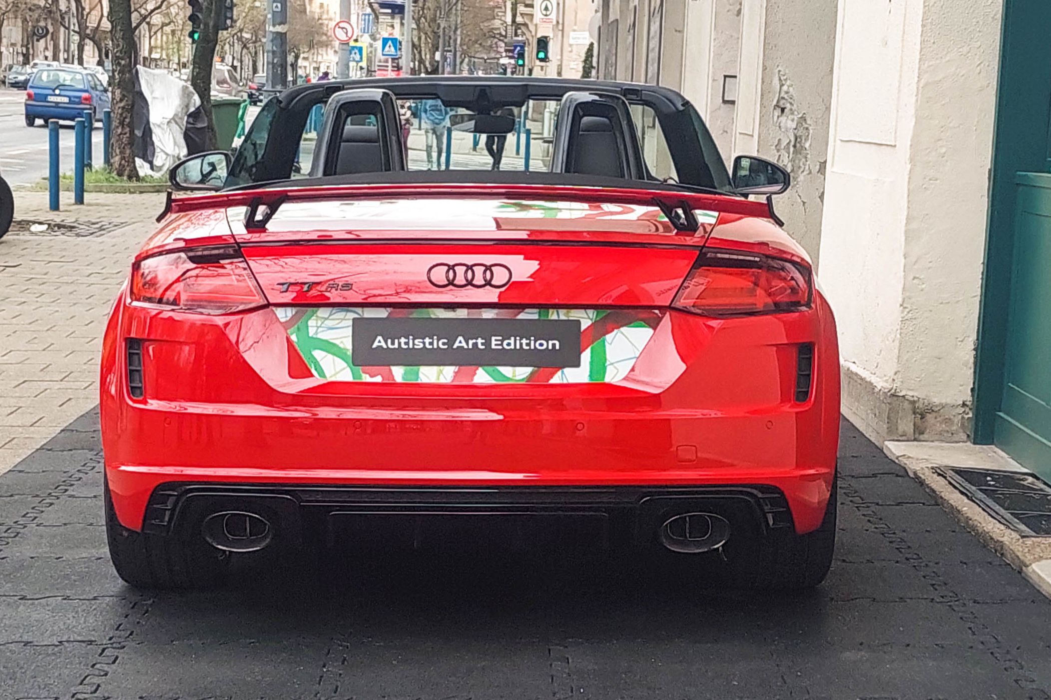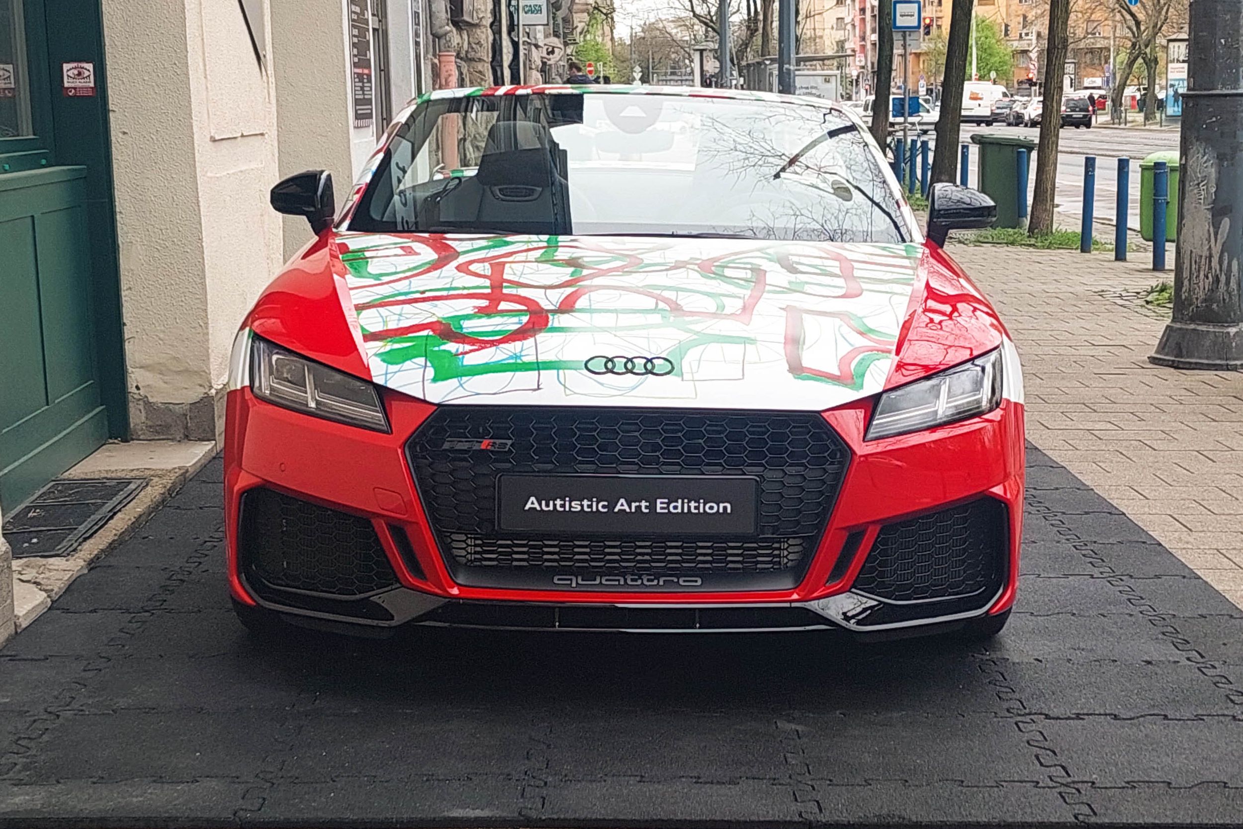 A budapesti Bartók Béla úton található Autistic Art galéria előtt különös TT RS pózolt, már csak azért is mert az utolsó legyártott példányról van szó. Na, de miért ott? A képgyűjtemény mögött álló alapítvány 2006 óta segíti az autista fiatalokat (az elmúlt 18 évben több mint 600 millió forinttal támogatták őket), idén pedig minden eddiginél nagyobb attrakciót villantottak a mára már szokásossá vált jótékonysági árverés főtételének képében. A Porsche Hungariával létrejött együttműködés keretében a győri gyártósorról utolsóként legördült Audi TT RS modell került kalapács alá, ráadásul nem is akárhogy, hiszen az autó külsejét egy fiatal autista művész, Varga Máté művével dekorálták, amelynek címe Labirintus.