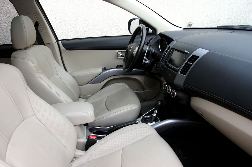 A hajtásláncon és a felületi frisstíésen túl nem sokat változott az Outlander. Az utastér az autó egészéhez hasonlóan praktikus. A kesztyűtartó például öblös, mindegyik ajtózseb palacktartós. A második sori, tologatható, szabályozható támladőlésű ülések a csomagtérből elektromos gomb érintésére billenthetők előre. A harmadik sori szükségülések felhajtása nem bonyolult, viszont az ülések is primitívek, parányiak, formázatlanok. Az összes ülést felhajtva lényegében nincs csomagtér, a poggyászokat nyakba kell venni, amúgy 5 üléssel a kalaptartóig pakolva (és a második üléssor helyzetétől függően) 544-589 liter áll rendelkezésre, az ülések előrehajtásával 1691 l-es, síkpadlós a tér. Praktikus és egyben igazi majomfogó a két részletben nyíló csomagtérajtó. Az alsó lebillenthető rész akár egy felnőttet is elbír és így nem csak teljes szélességű, tökéletesen küszöbmentes is a nyílás – a két rész külön-külön nyitása macerásabb, de helytakarékosabb, mintha az ajtó egyben emelkedne.