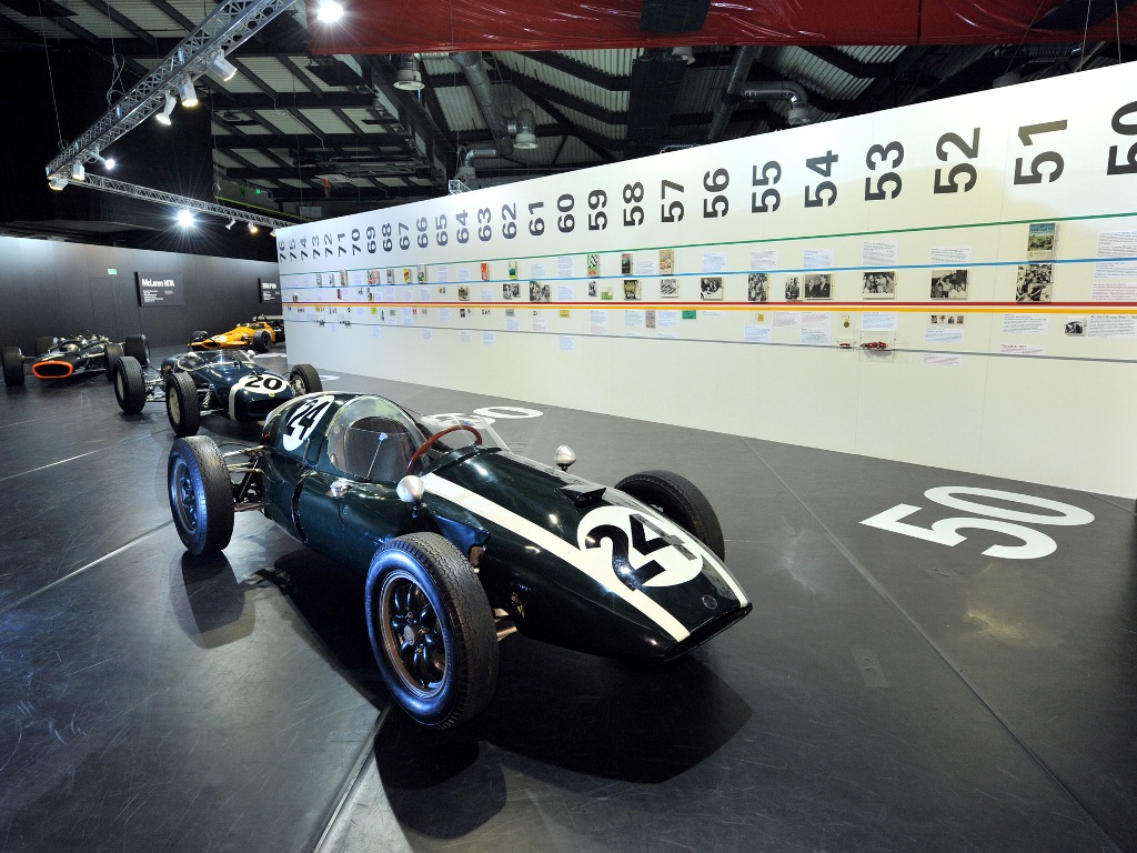 Ez a legendák kiállítása: autók és nevek sorakoznak előttünk, például az 1959-es Cooper T51, amelynek technikai fölénye világossá tette, hogy a jövő a középmotoros kialakításé. Mindjárt mögötte áll az 1961-es Lotus 18, a kiállítás összértékének felét képviselő darab, amellyel Stirling Moss megnyerte az élete legnagyobb diadalának tartott Monacói Nagydíjat.