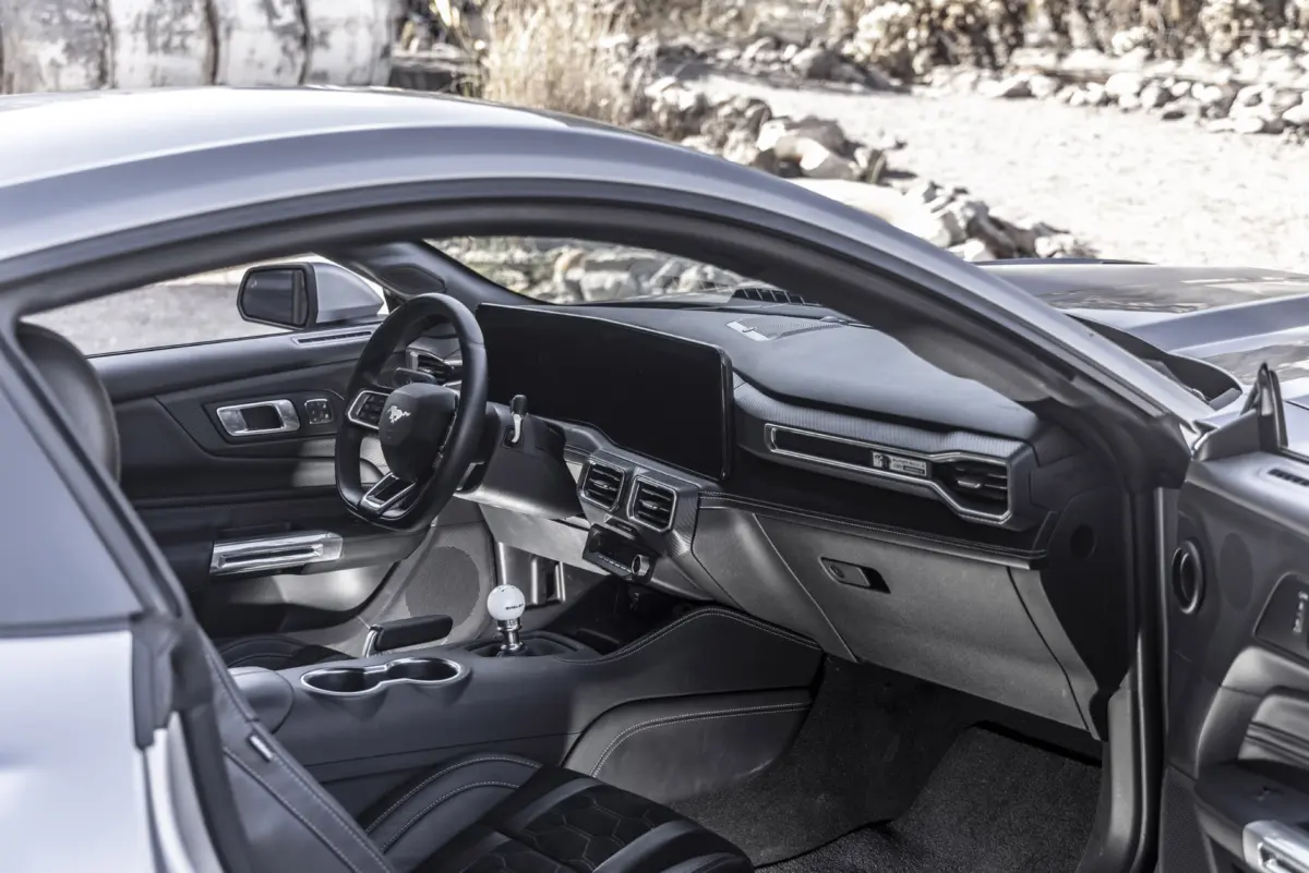 A Super Snake kérhető hatfokozatú manuális vagy tízfokozatú automata váltóval. Manuális esetén egyedi Shelby-váltógomb jár, a utastérben pedig sorszámozott plakettek, Alcantara-bőr ülések és kígyópikkelyre emlékeztető dizájnelemek fogadnak. Az egyedi belső csíkok, logók és a hímzett Shelby szőnyegek együttese egyszerre ad prémium és valóban exkluzív érzetet. Szín szerint hétféle variánsban kérhető a feketén át (Shadow Black) a narancson (Orange Fury) keresztül egészen a pirosig (Racing Red).