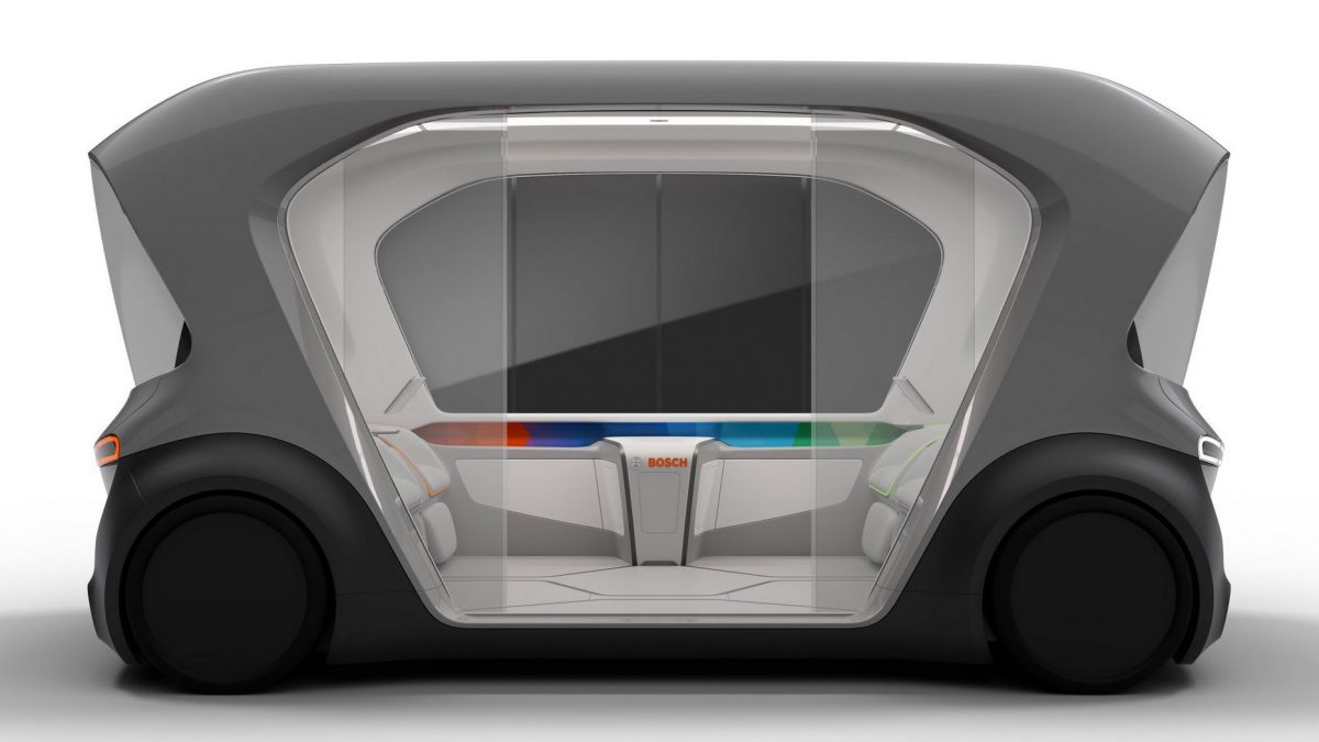 Az elképzelések szerint ezek a kisbuszok igény szerint járnának (tehát nem menetrend szerint), szintén okostelefonról egy alkalmazással lehetne a legközelebbit elhívni. A Bosch számításai szerint így jelentősen csökkenhetne a városokban az autós forgalom. A kisbusz meghajtásáról nem közöltek információt, ám természetesen villanymotorral képzelik el a jövőt.