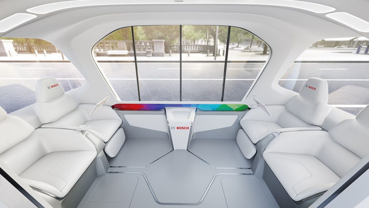 Furcsa módon a Bosch és más gyártók is elég kevés személy szállítására tervezik a jövő tömegközlekedési eszközeit. Persze nem egy igazi busz a most szóban forgó jármű. Inkább egy kisbusz, vagy egyterű leszármazottja az IoT, mégis csak négy ülés található benne. Viszont, ha mindig „teltházzal” közlekedik, már akkor is jobb a kihasználtsága, mint sok 4-5 személyes autónak, amelyekben többnyire csak egy személy ül.