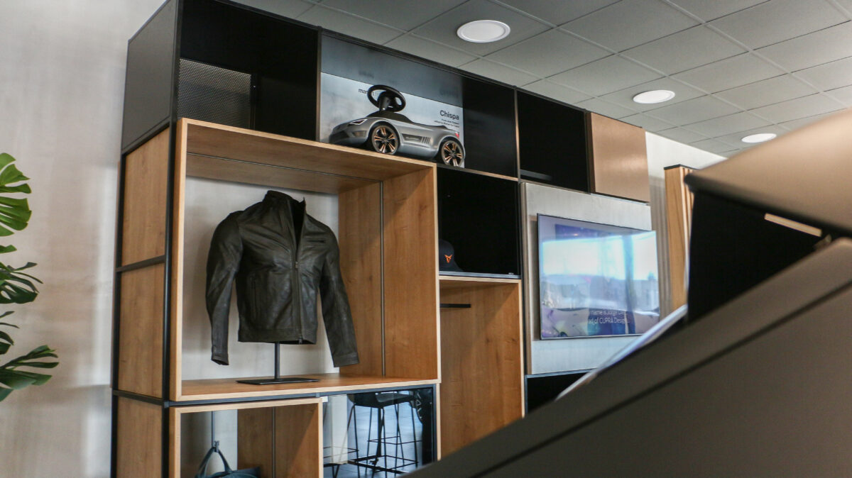Ami meglepett, hogy bár ez egy Cupra szalon, mégsem csak a sportos márka termékeit találhatjuk meg itt. Ahogy eddig a SEAT szalonokban láthattuk - hogy a Cupra modellek is kaptak egy sarkot - itt most a SEAT termékei kerülnek a háttérbe. Legrosszabb esetben is ugyanannyi lehet kiállítva SEAT-ból, mint amennyi Cuprát találunk bent, így a márka befutásáig erre az egyensúlyra törekszik a forgalmazó. Ezeket egy központi szigettel választják el, itt találhatóak a már említett fotelek és kanapék. Ez az új iránya a Cuprának, a SEAT-ról egyértelműen erre a márkára kerül át a hangsúly, éppen ezért 2025-től már csak így lehet majd Cuprát árusítani, nem lesz elég hozzá egy sarok egy SEAT kereskedésben.