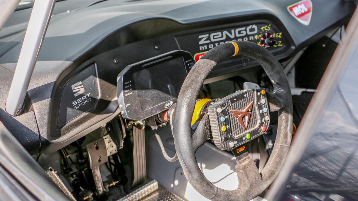 Érdekességképp jelen volt még a Cupra TCR versenyautója is, amelyet a szalon előtt állítottak ki