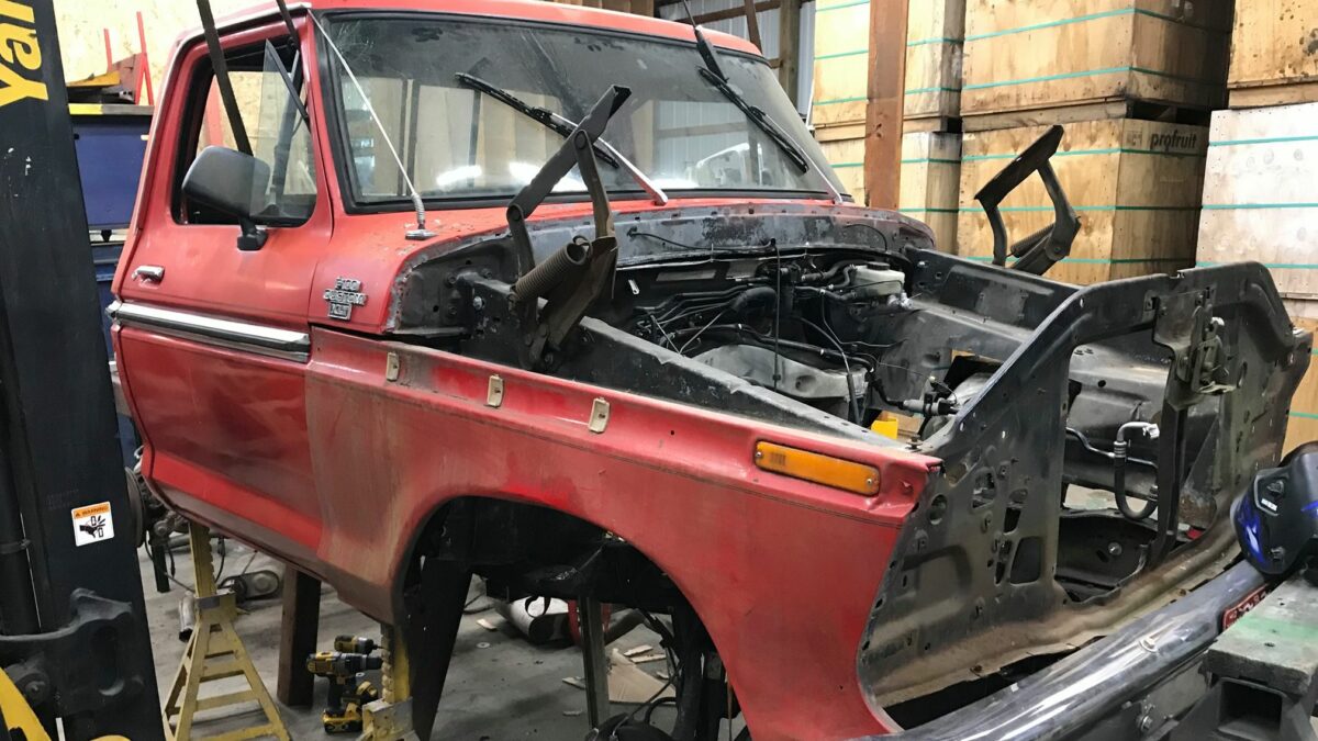 Missouri államban tengeti életét Tim Heerboth, aki világ életében pickup-mániás volt. Nemcsak kedveli a kisteherjárműveket, de ért is hozzájuk; a közösségi oldalán található fényképek tanúsága szerint gyakran és szenvedéllyel állít helyre jobb sorsra érdemes platósokat. Így nem véletlen, hogy tavaly megkaparintott egy 1977-es Ford pickupot, amelyről sajnos kiderült, hogy a váza a menthetetlenségig korrodálódott. A hiba orvoslására számtalan lehetőség állt előtte, ő pedig jó érzékkel kiválasztotta közülük az elképzelhető legbonyolultabbat. Ugyanis a műhelyében parkolt egy Lexus LS 400-as, pontosabban annak maradványai. Mivel a roncsból pont az volt használható állapotban – a padlólemez és a hajtáslánc – amire neki leginkább szüksége volt, kiötlötte, hogy a B-oszlop mögött elvágott padlóra ráhegeszti az F-100 fülkéjét, majd épít mögé egy váznyúlványt, amelybe beköti a Lexus hátsó futóművét. Barátai azonban rábeszélték, hogy a luxuslimuzin kifinomult hátsó futóműve helyett tartsa meg a teherjármű laprugós konstrukcióját, hogy még különlegesebb legyen a szerkezet. Heerboth tehát lényegében
