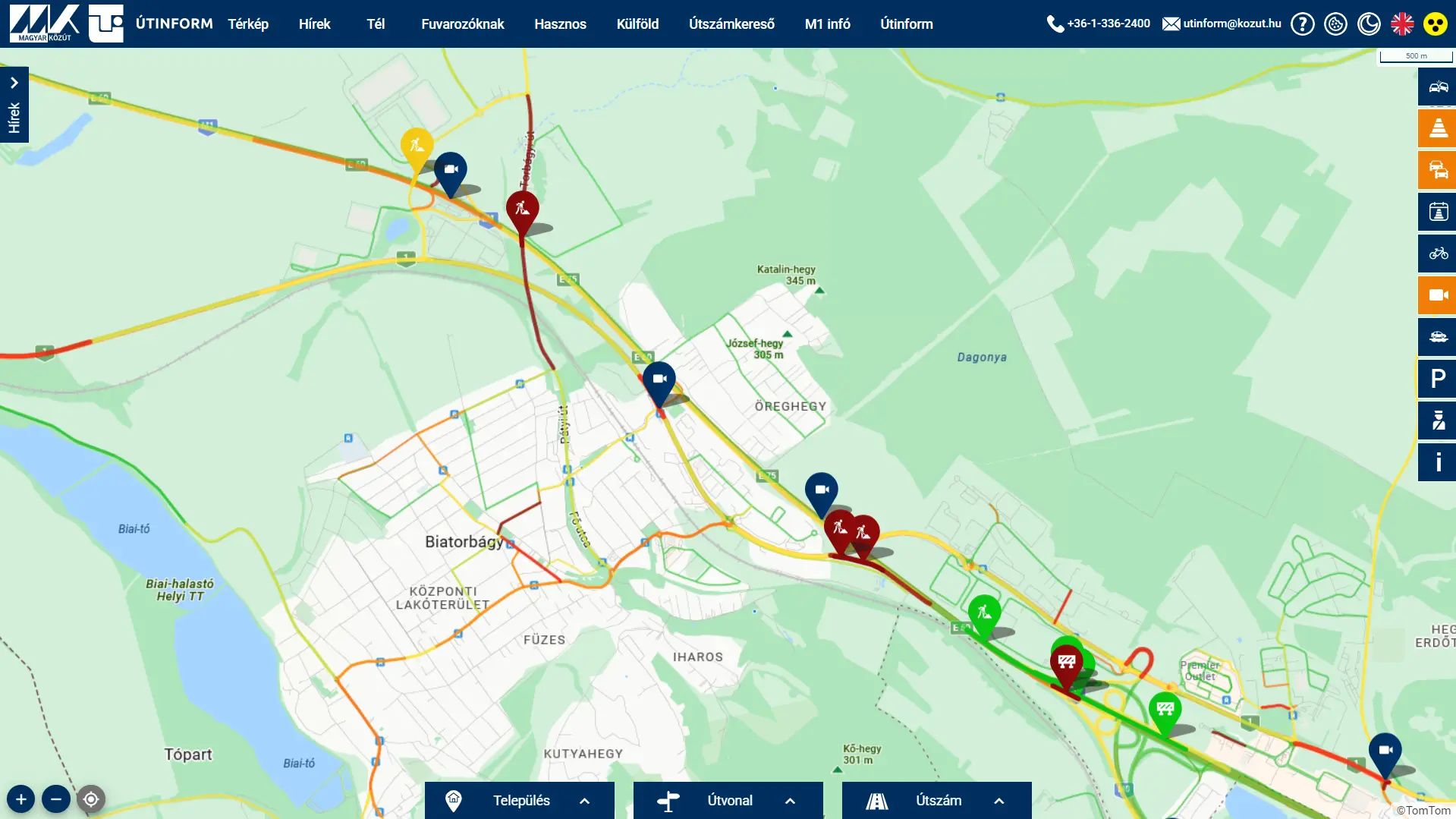 A térképen ráadásul a torlódásokat, a dugókat is ellenőrizni lehet élő forgalmi adatok segítségével, illetve a különböző forgalmi akadályokat is jelezheti gombostű, ezeket a képernyő jobb szélén lehet ki-be kapcsolni a térképen, ahogy a webkamerákat is. Jelenleg is akadnak sajnos olyan kamerák, amelyek átmenetileg nem üzemelnek, ám a nagy részüknek még a hó sem jelent akadályt, íme néhány példa, hogy mit lehetett látni a kameraképeken tegnap kora este.