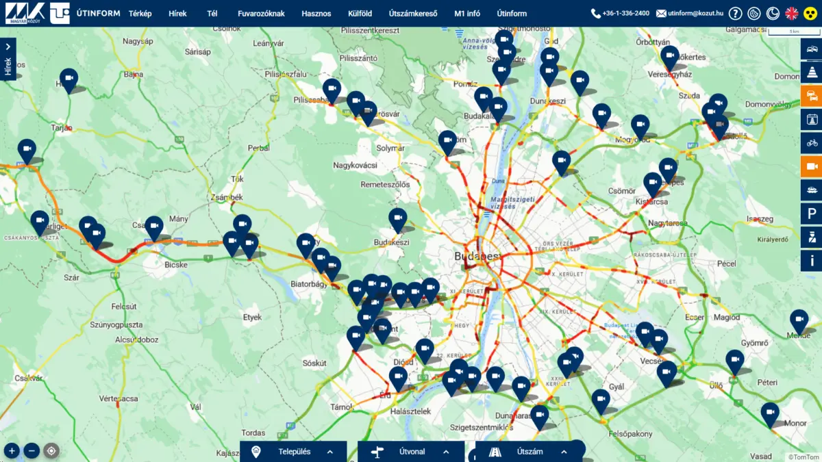 Ehhez hasonló webkamerák találhatók Budapesten is, amelyekkel hatékonyan ellenőrizhető a forgalmi helyzet a fővárosban, ám azokat nem az útinform, hanem a Budapest Közút honlapján lehet elérni. Fontos, hogy az alábbi linken elérhető, fővárosi térképen nagyon közelre kell nagyítani a gombostűkre, csak akkor válnak kattinthatóvá, ha minden kamera külön jelenik meg.