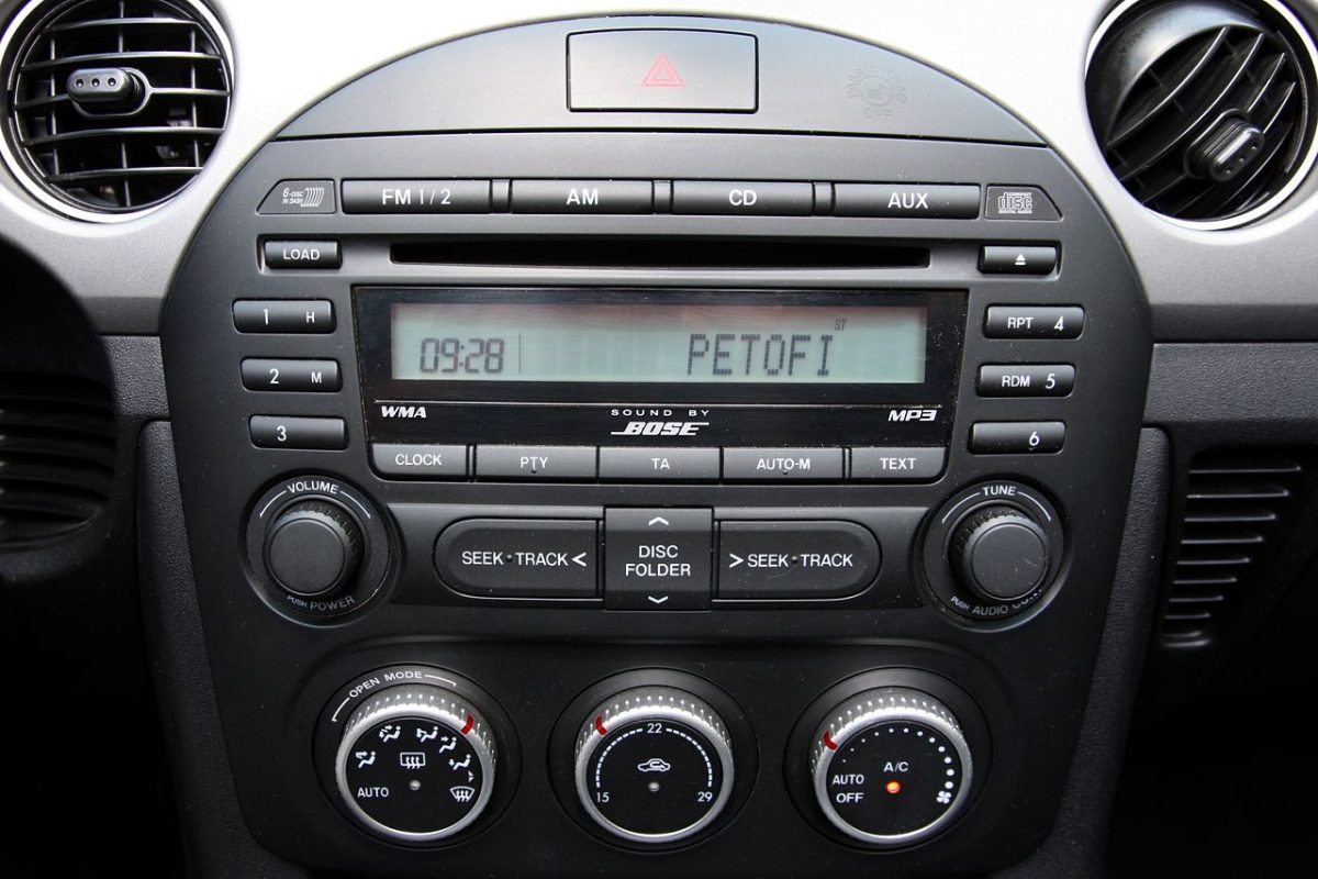 Hat CD lemezt képest elnyelni a hifi fejegysége, amelynek hangzását a BOSE hangolta az MX-5 utasteréhez. AUX csatlakozó van, USB viszont nincs, ahogy más majomfogó extrákat is nélkülözni kell - akinek high-tech roadster az álma, vegyen Mercedes-Benz SLK-t háromszor ennyiért. Aki csak vezetni szeret, nyugodtan maradjon a Mazdánál, nem fogja megbánni, ezt garantáljuk!