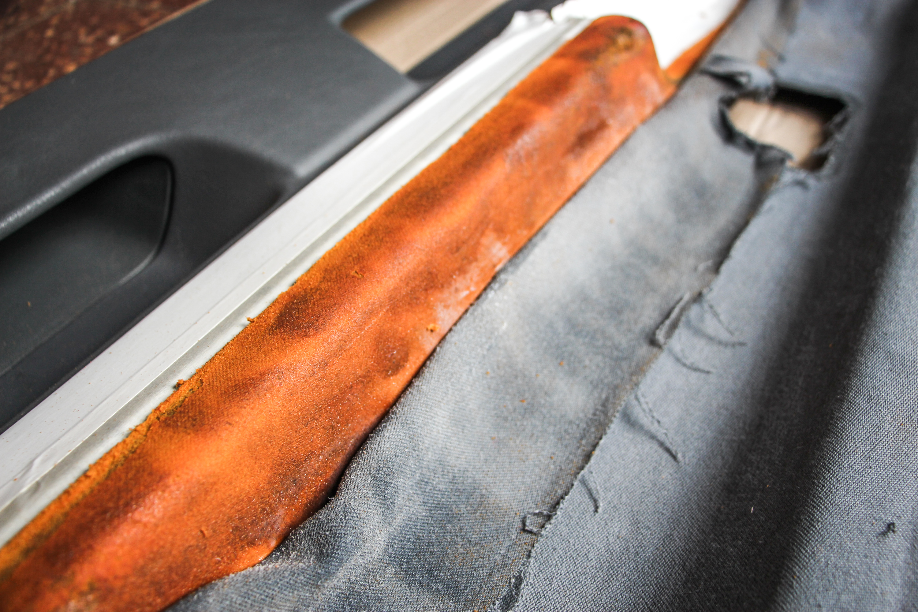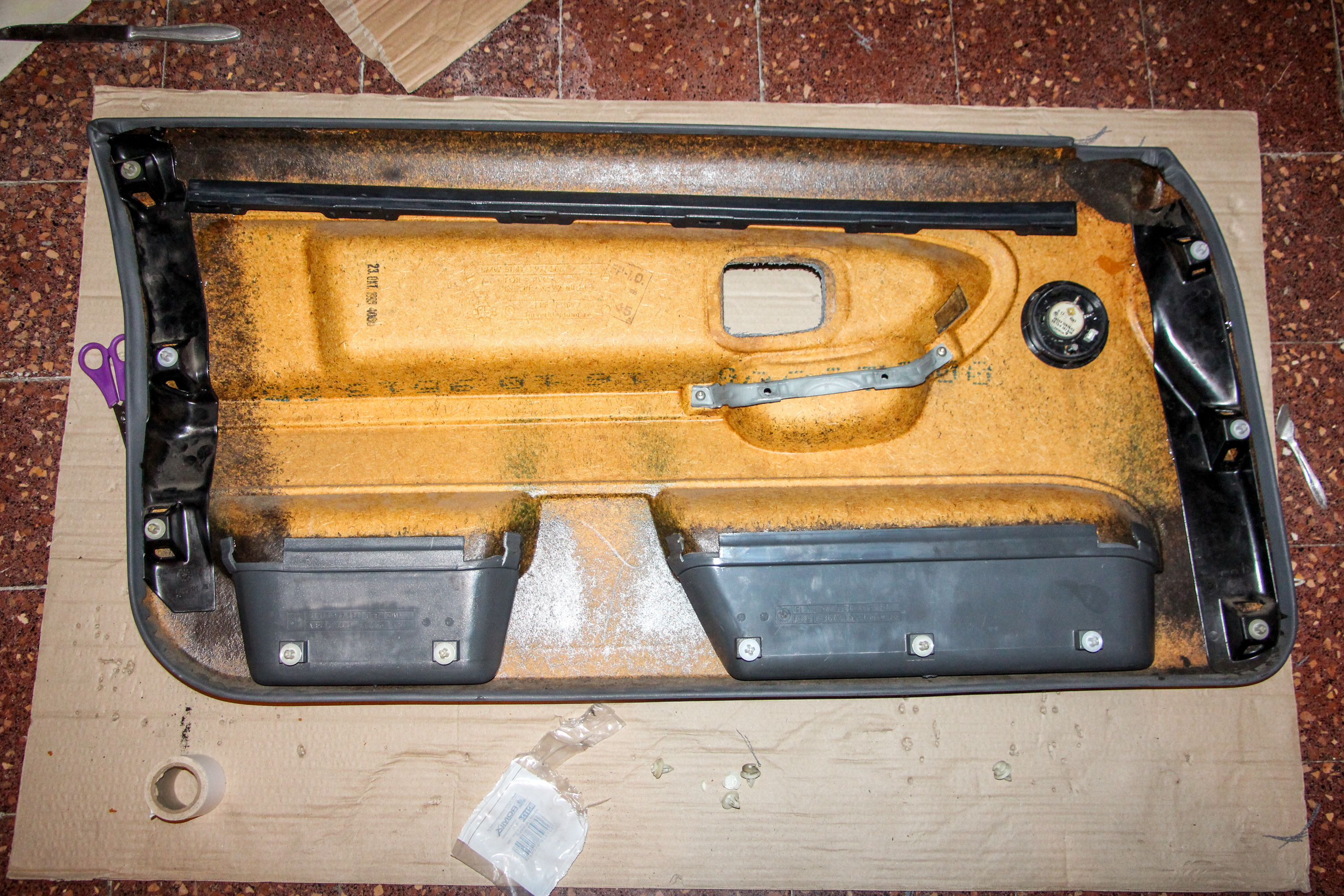 Van több probléma is az öregedő E36-ok ajtajaival, a valamiféle újrahasznosított anyagból készült idomra műanyag elemeket ragasztottak hátulról, ezeken a paneleken vannak a patentek, amik a helyén tartják az ajtóborítást.