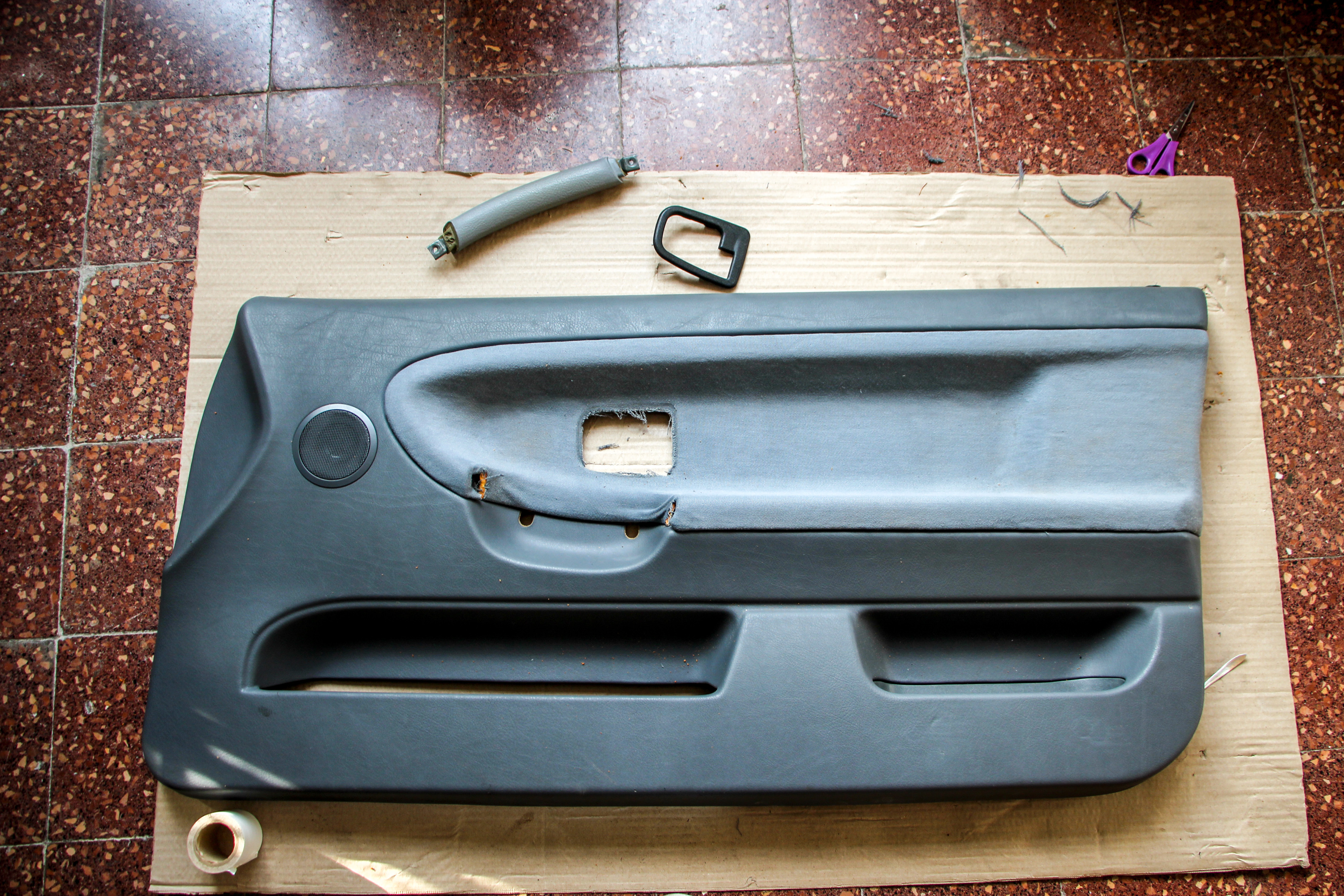 Nálam is ez volt a helyzet, a bal oldalit már korábban javították, így ott csak kis korrekcióra volt szükség, jobb oldalt viszont mindegyik elengedte a helyét. A kárpitot leszedni az ajtóról egyszerű, két csavar van a kapaszkodó mögötti fészekben, plusz a kilincs keretét kell előrefelé megtolva lepattintani. Majd alulról kezdve feltéphetjük a patenteket, a legutolsó legyen a teteje, az ablaknál. A patentekre lehet vigyázni, de inkább vegyünk előre egy csomagot pár száz forintért, nem árt, én is vettem még korábban, így könnyedén cseréltem, amelyik eltört.A fekete paneleken vannak a patentek, ezek több mint 20 év alatt leesnek és az ajtó lógni kezd, alul a fiókok ezek a tartó panelek, két komponensű műgyantával könnyen orvosolható