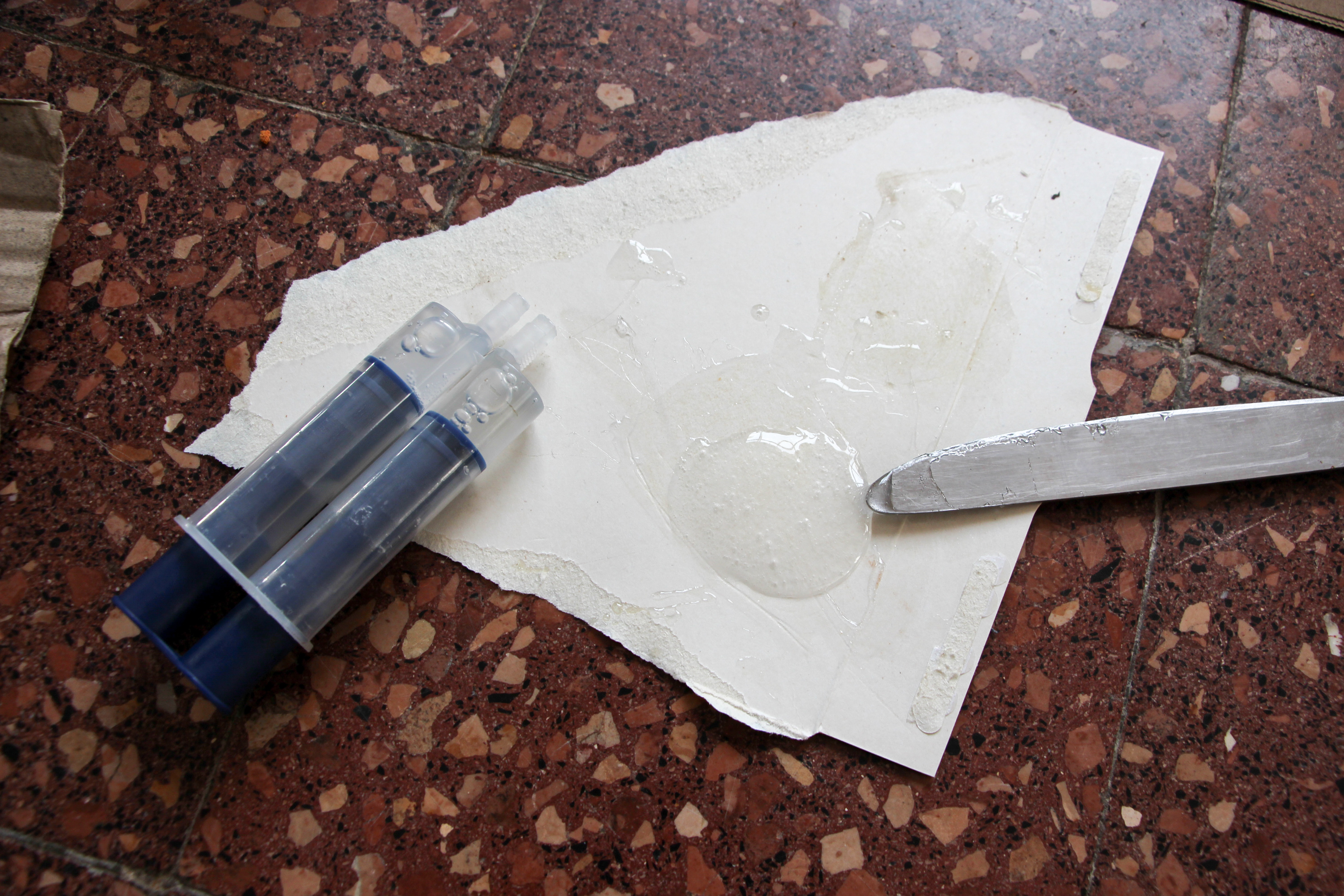 Én a szélekre csak akkor fújtam, mikor a közepe már megvolt, a ragasztónak kell pár perc száradás, mielőtt összeragasztjuk a két felületet. Szükség lesz egy szerszámra a peremnél