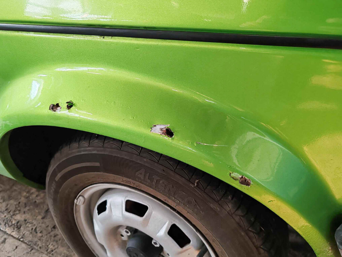 Félreértés ne essék, a beavatkozás nélkül is kaphatott volna még egy műszaki vizsgát a Golf: egy 40 éves, kilométermilliomos autóhoz képest kimondottan szép állapotban volt. Ennek ellenére úgy gondoltam, hogy még csírájában el kellene fojtani ezeket a problémákat. Ugyanazt a három lépést választottam, amit 10 évvel azelőtt is: az autóról kerüljön le a festék, legyen kijavítva minden karosszériahiba, majd legyen lefestve az autó teljes egészében, egységesre.