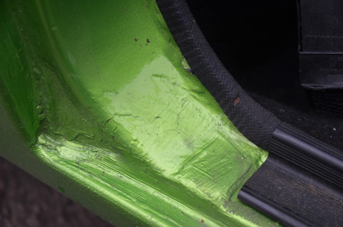 Kicsit jobban megnézve az autót kiderült, hogy egyes helyeken szét sem szedték kellőképpen, illetve olyan is előfordult, hogy előkészítés nélkül ráfújtak a rozsdára, sérülésre