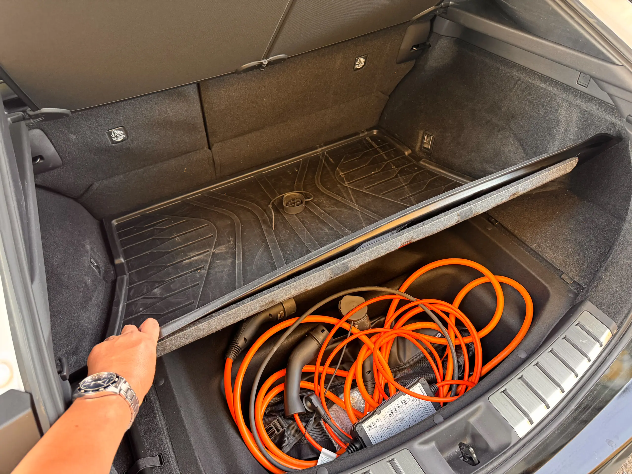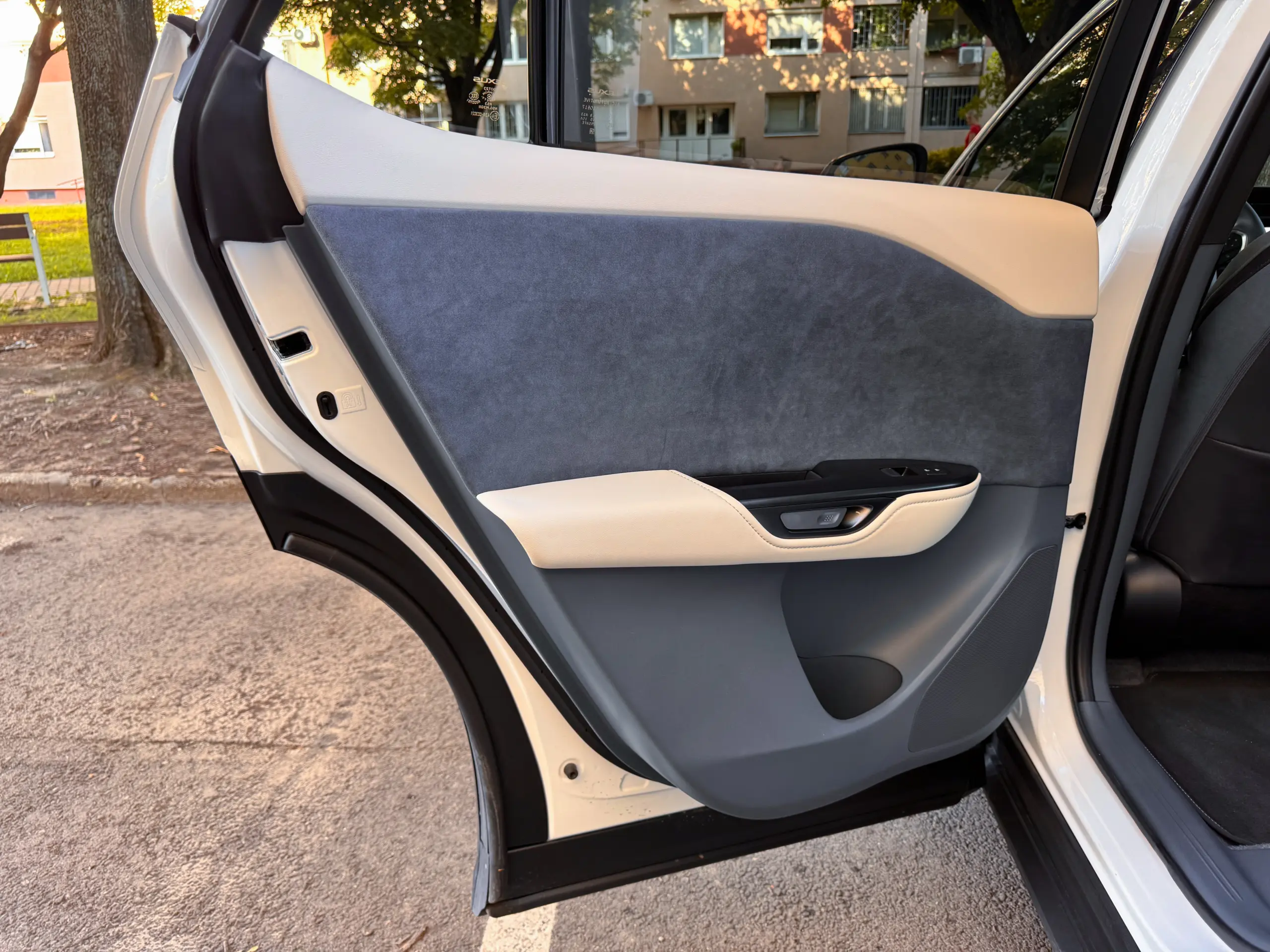 Kiváló közlekedési eszköz az RZ, hiszen csendesen, stresszmentesen falja a kilométereket. Habár szemre sem kicsi, mégis könnyű vele parkolni, a 360 fokos kamera nagy segítség, de a 4,8 méteres hosszúság miatt azért vadászni kell a megfelelő méretű helyeket az utcai parkolásnál. Persze cserébe rendkívül tágas az utastér. Elöl a hasított bőr szerű burkolatokat néha önkéntelenül is végisimítottam, annyira kellemes a tapintásuk, az ülések kényelmesek elöl-hátul. A lábtér szintén fejedelmi hátul és a csomagtér 511 literes alaphelyzete is bőséges, ráadásul a töltőkábeleknek külön rekesz jut a padló alatt, így nem foglalnak a hasznos térből.