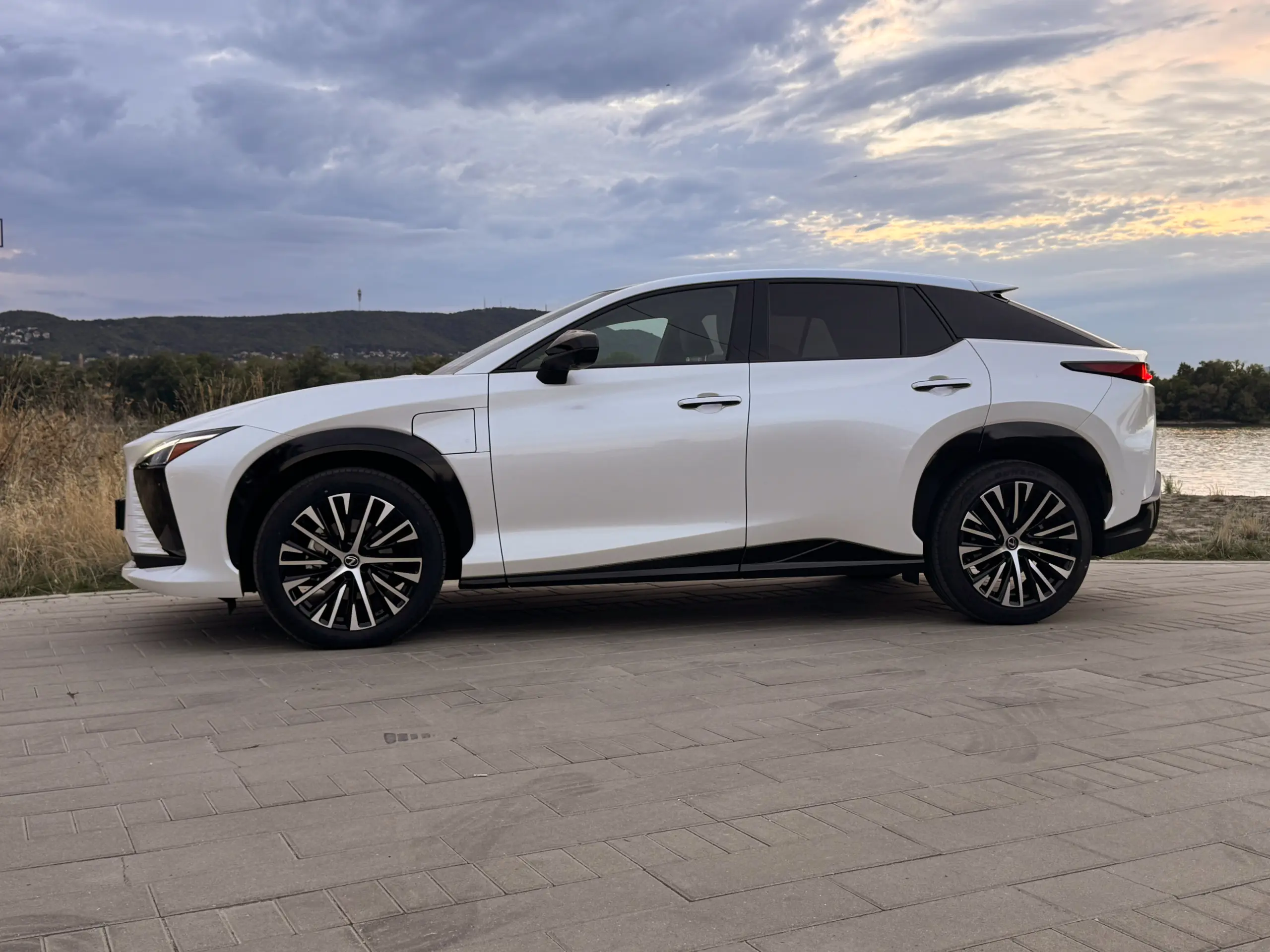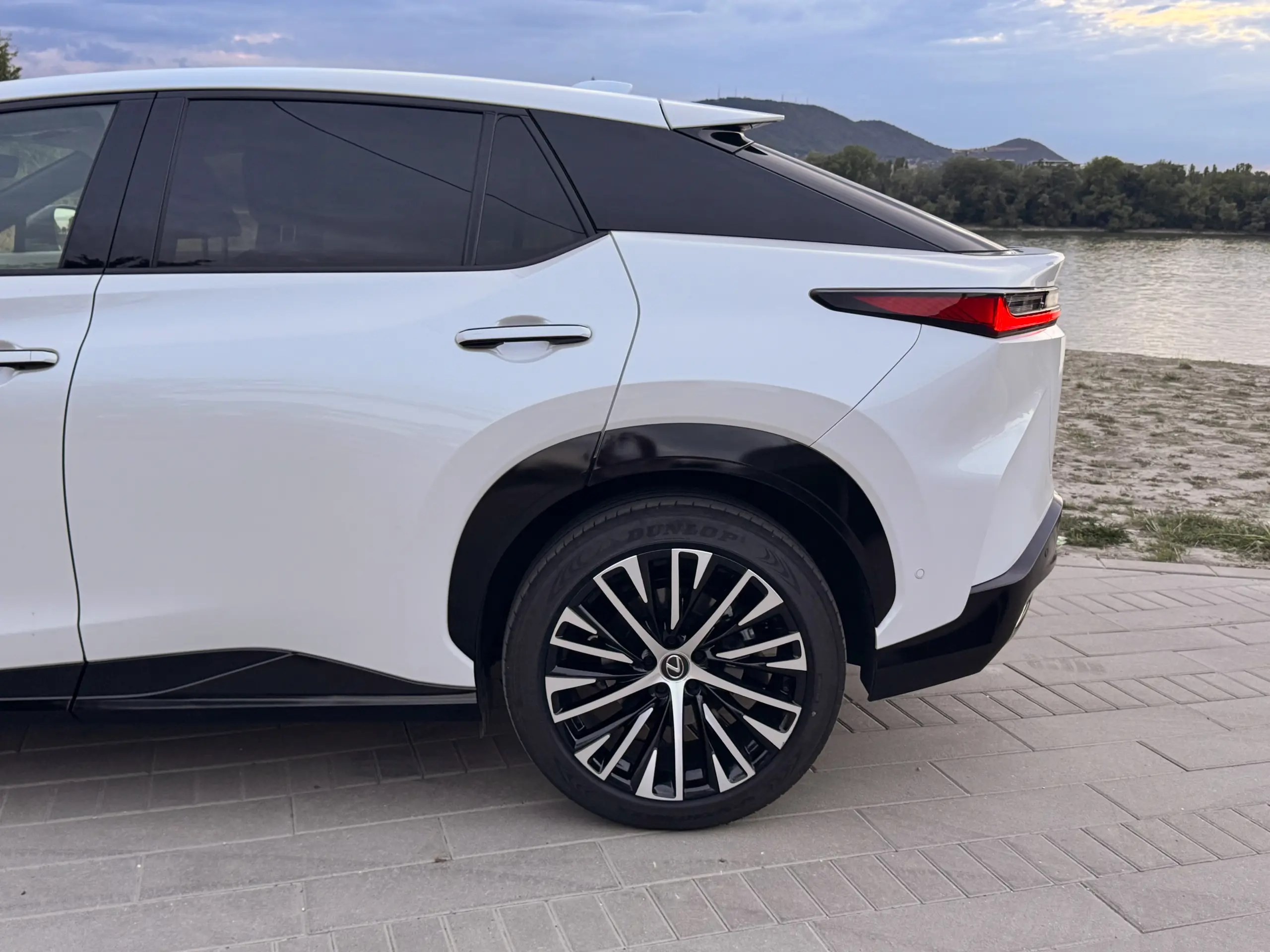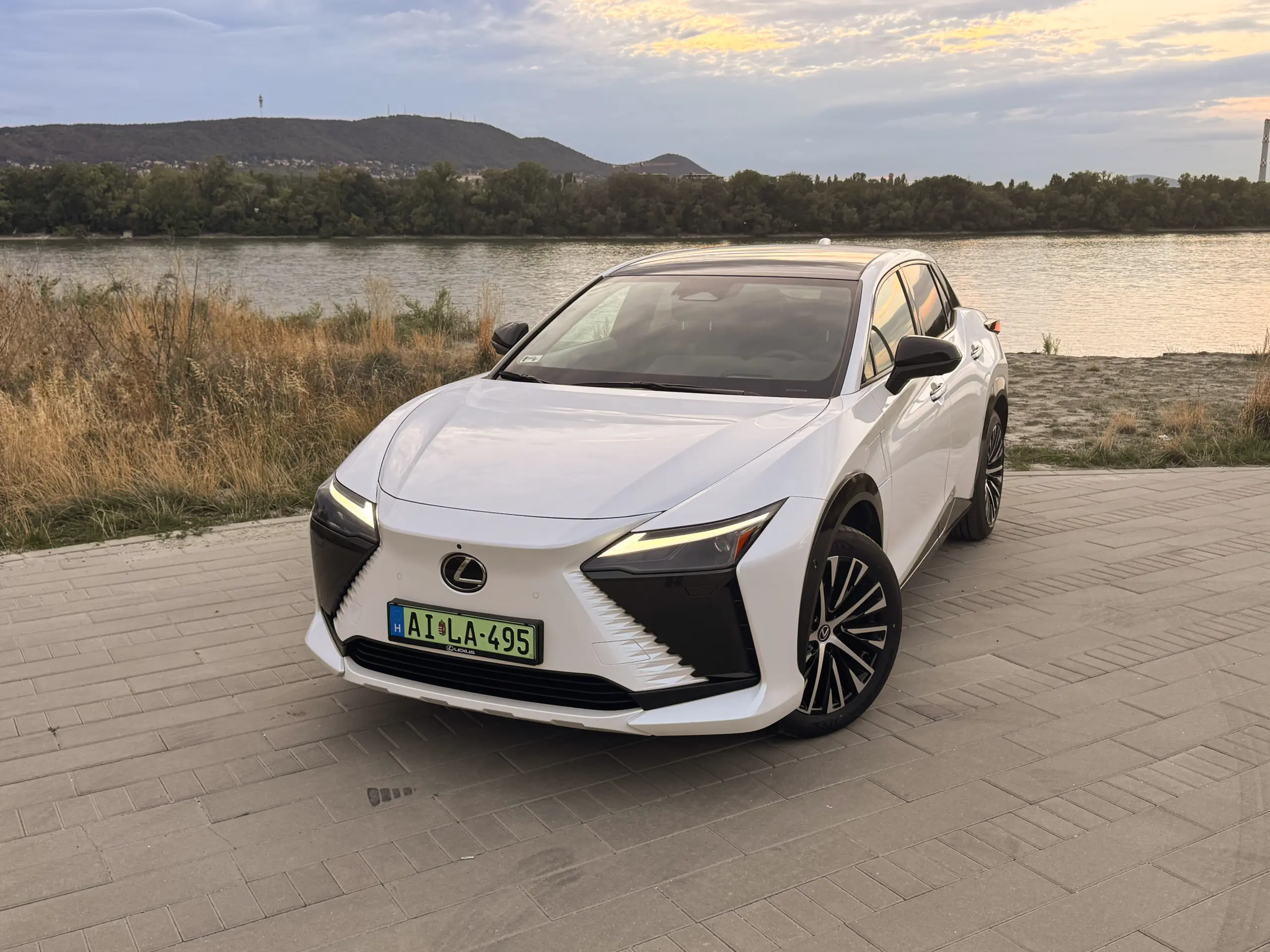 Továbbá ez a modell hozta el azt a leburkolt frontrészt, amely aero-hatékony, de mégis megpróbálja az egykori orsó formát idézni. Kicsit több rácsozással, de a márka jelenlegi formanyelvében ez a megoldás terjed, a tisztán elektromos modelleken pedig nagyon hasonló lesz a látvány, például az új ES-en is. Többeknek egyébként az LFA hátsója jutott eszébe az RZ orráról, ami nem rossz képzettársítás, és ha ilyen legendákra emlékeztet az nem árthat neki. Sajnos a fehér fényezés kissé elrejti a vonalait, de oldalról is nagyon érdekes látvány, szóval szerencsére nem kapkodták el a tervezők, hiába került nagy nyomás alá néhány éve az egész Toyota konszern az egyesek szerint lassú villanyosítás miatt. Ezeknek az "egyeseknek" nem lett igazuk,, halomban állnak az eladhatatlan elektromos autók világszerte. Ugyanakkor ezért létezhet ez a kedvező árú RZ verzió is, amelynek hátsója is tipikus Lexus a teljes szélességben végigfutó fényhíddal. Feltűnő, de ízléses. Elég nagy SUV - az NX és az RX közé ékelődik - de nem érezni olyan tolakodóan nagynak, mint mondjuk néhány német prémium SUV-ot.