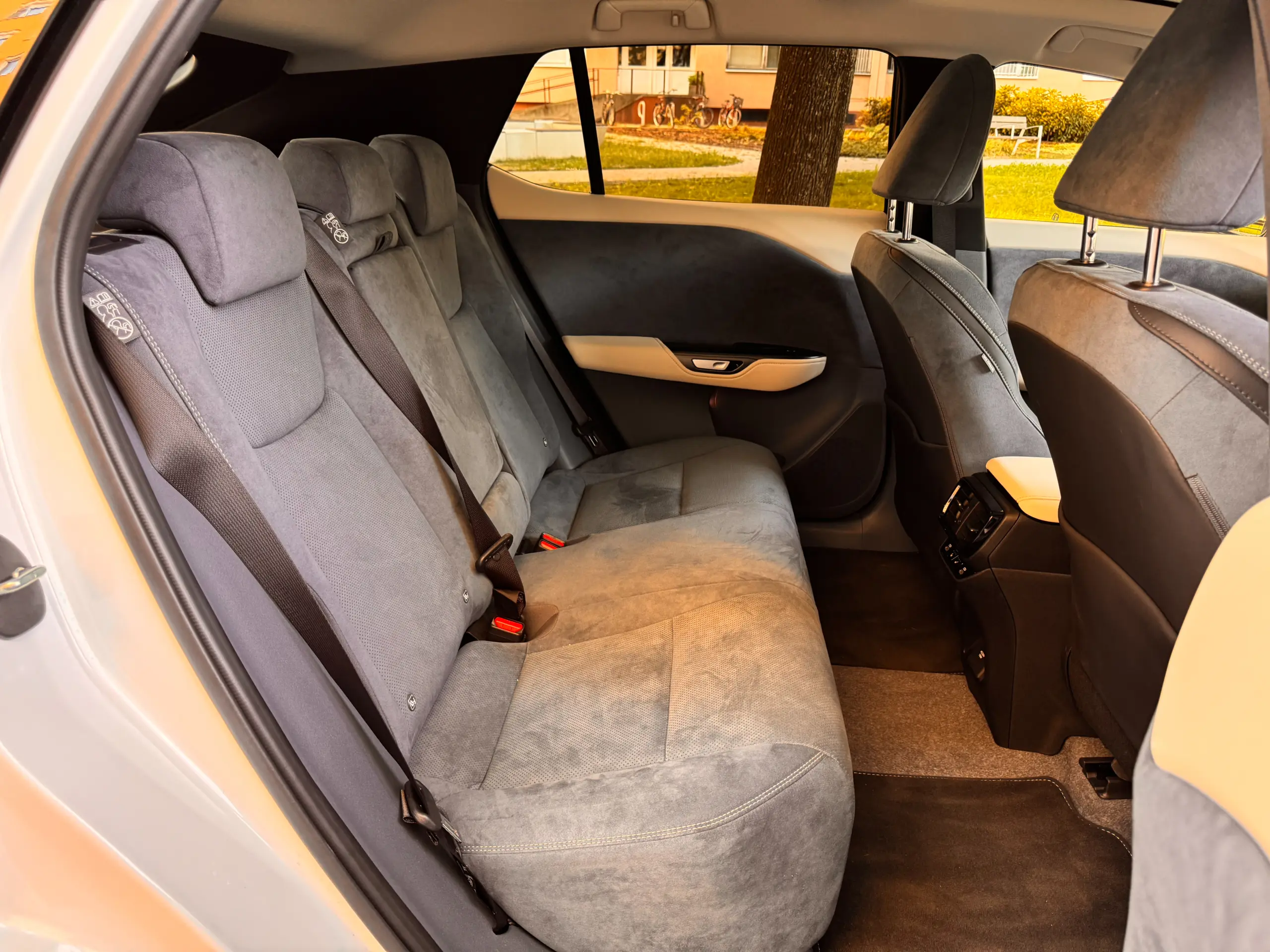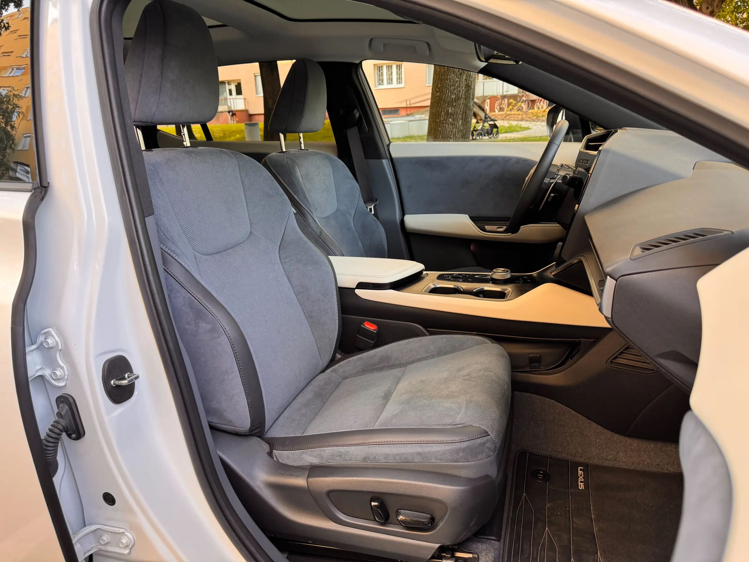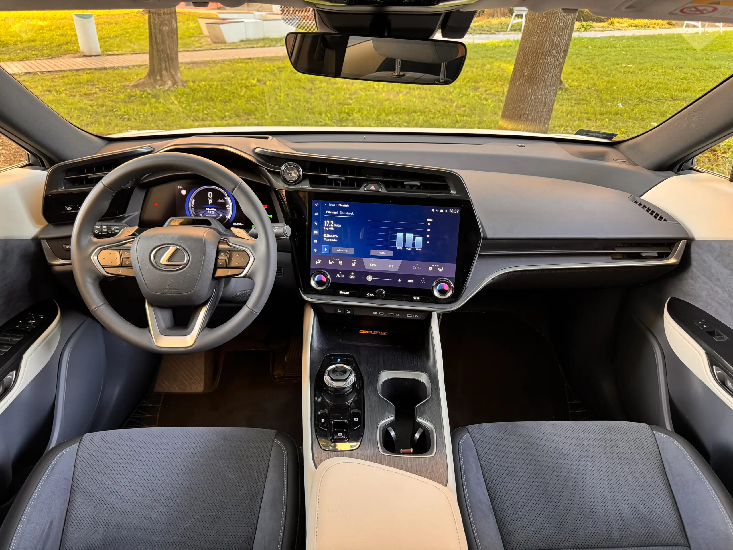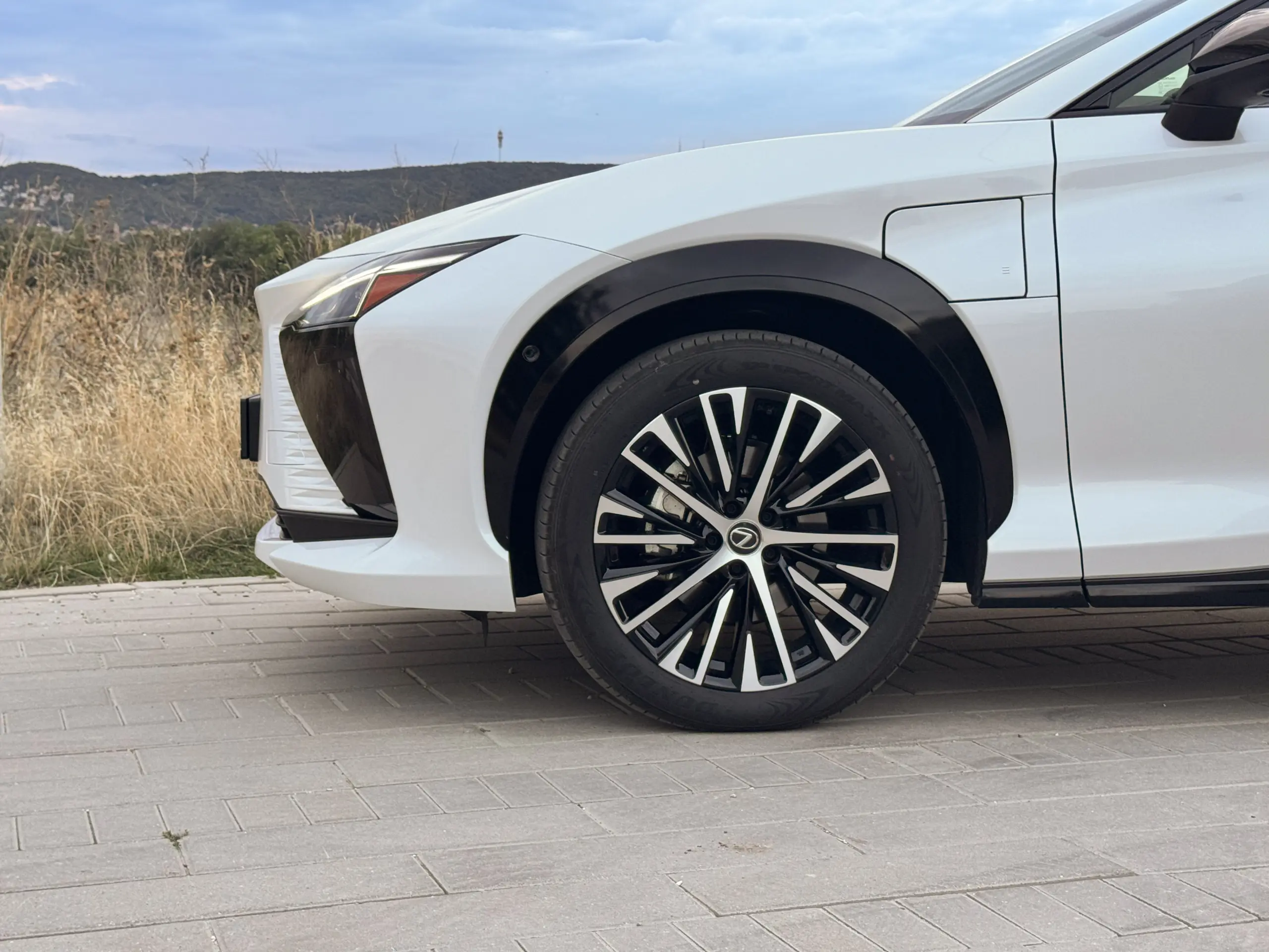 Továbbá ez a modell hozta el azt a leburkolt frontrészt, amely aero-hatékony, de mégis megpróbálja az egykori orsó formát idézni. Kicsit több rácsozással, de a márka jelenlegi formanyelvében ez a megoldás terjed, a tisztán elektromos modelleken pedig nagyon hasonló lesz a látvány, például az új ES-en is. Többeknek egyébként az LFA hátsója jutott eszébe az RZ orráról, ami nem rossz képzettársítás, és ha ilyen legendákra emlékeztet az nem árthat neki. Sajnos a fehér fényezés kissé elrejti a vonalait, de oldalról is nagyon érdekes látvány, szóval szerencsére nem kapkodták el a tervezők, hiába került nagy nyomás alá néhány éve az egész Toyota konszern az egyesek szerint lassú villanyosítás miatt. Ezeknek az "egyeseknek" nem lett igazuk,, halomban állnak az eladhatatlan elektromos autók világszerte. Ugyanakkor ezért létezhet ez a kedvező árú RZ verzió is, amelynek hátsója is tipikus Lexus a teljes szélességben végigfutó fényhíddal. Feltűnő, de ízléses. Elég nagy SUV - az NX és az RX közé ékelődik - de nem érezni olyan tolakodóan nagynak, mint mondjuk néhány német prémium SUV-ot.