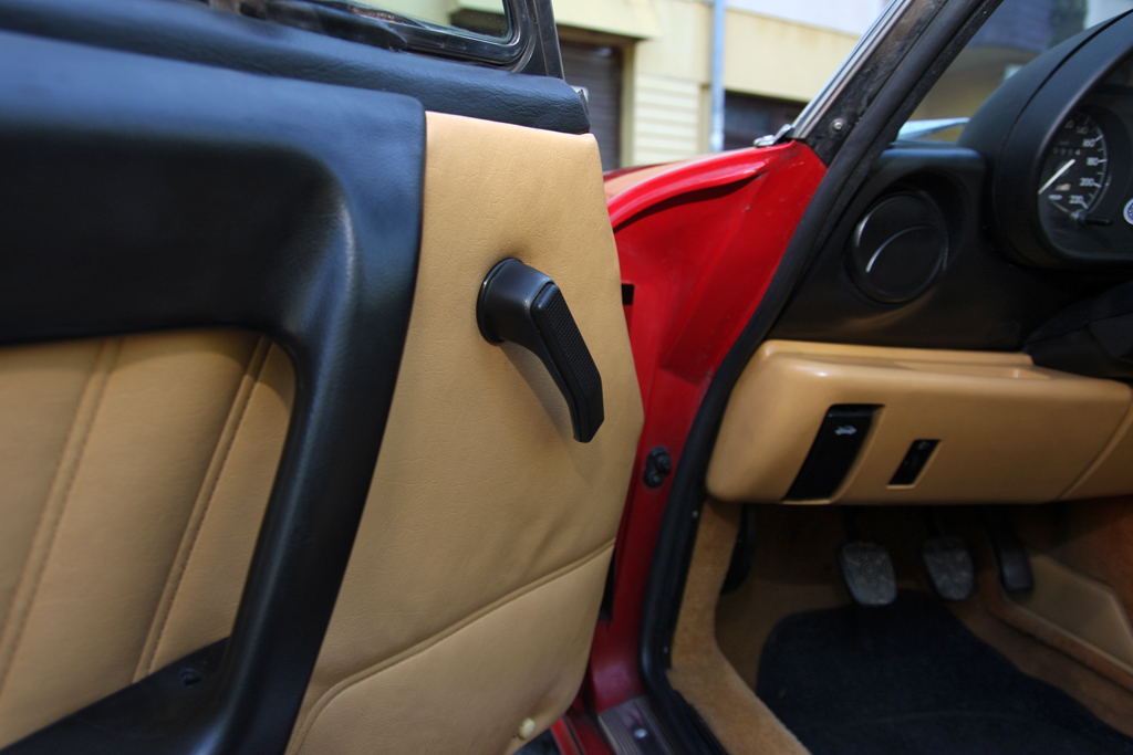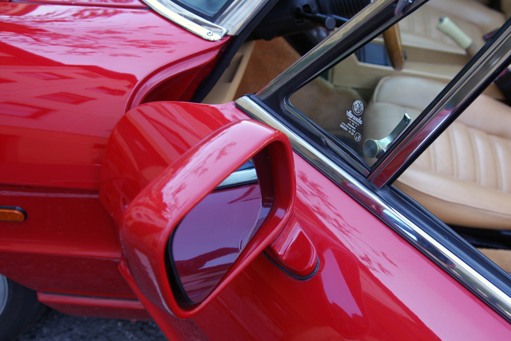 A hátsó lámpa amolyan 164-es, a szépen helyreállított alufelni zseniális, az első lámpa Ferrari-, Porsche-féle is lehetne, de nem az. Ez, pardon ő egy Alfa Romeo