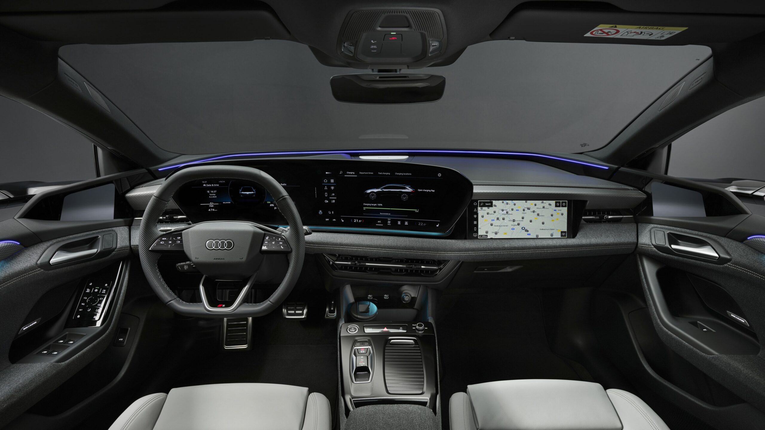 A műszerfalon alig akad fizikai gomb, viszont képernyőből annál több
