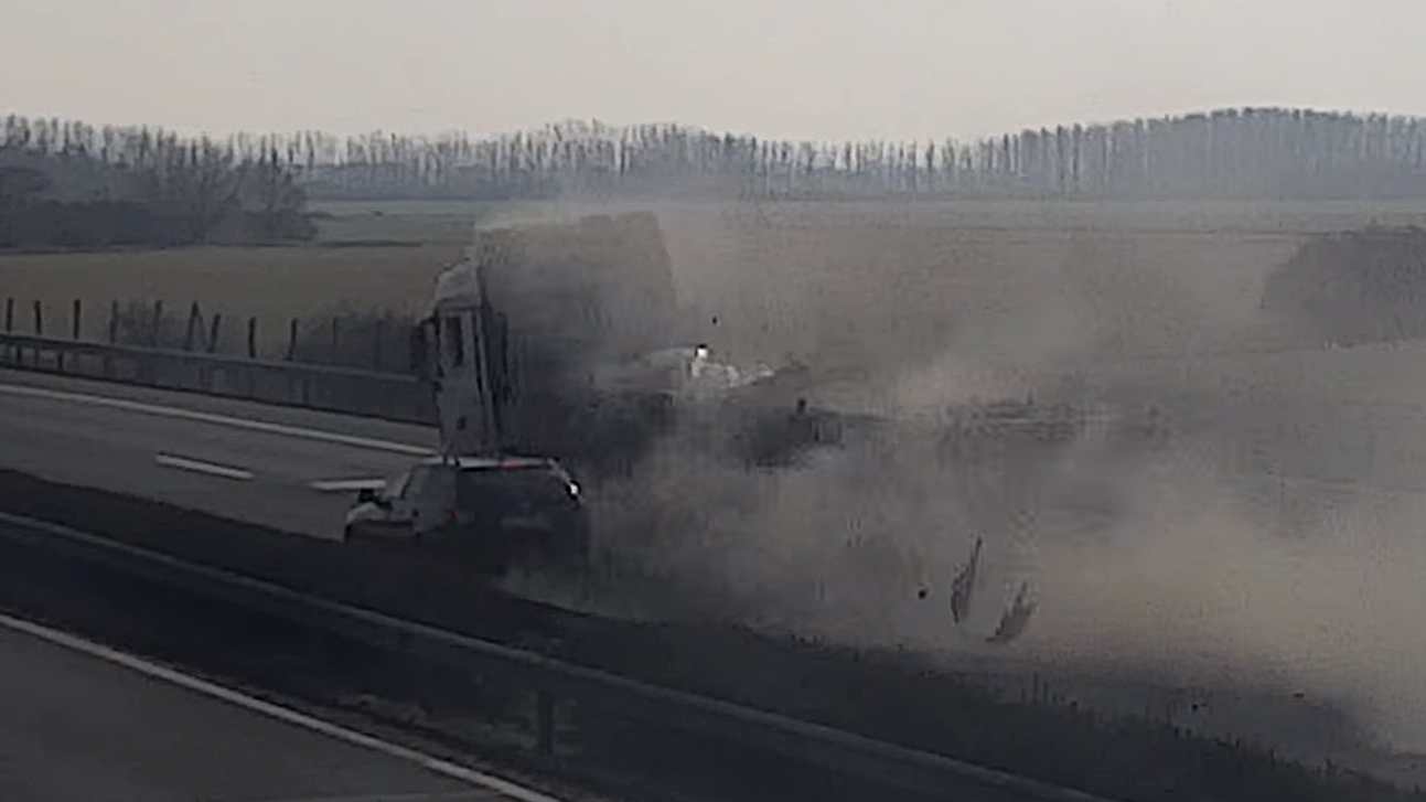 Ilyen, amikor az autópályán durrdefektet kap melletted egy kamion