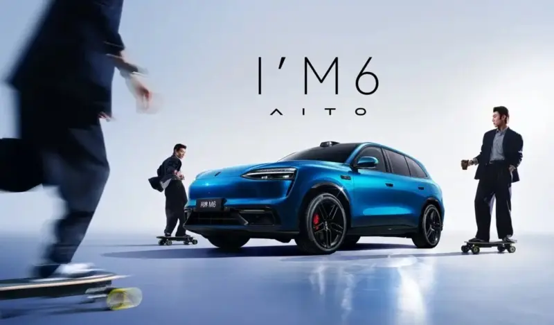 A két vállalat legújabb terméke a M6, amely a már létező M5 és M7 közé érkezik. Az újdonság alapvetően klasszikus SUV sziluettel rendelkezik, könnyű kiszúrni a tetején a LiDAR-t, valamint a piros féknyergek is hamar észrevehetőek. Érdekesség, hogy már az M6-oson sem alkalmaz a karosszériában visszahúzódó kilincset az AITO, ami vélhetően nem független a kínai kormányzat tiltásától, viszont fontos megemlíteni, nem ez az első típusok, amelyen a hagyományosabb megoldás felé nyúltak.