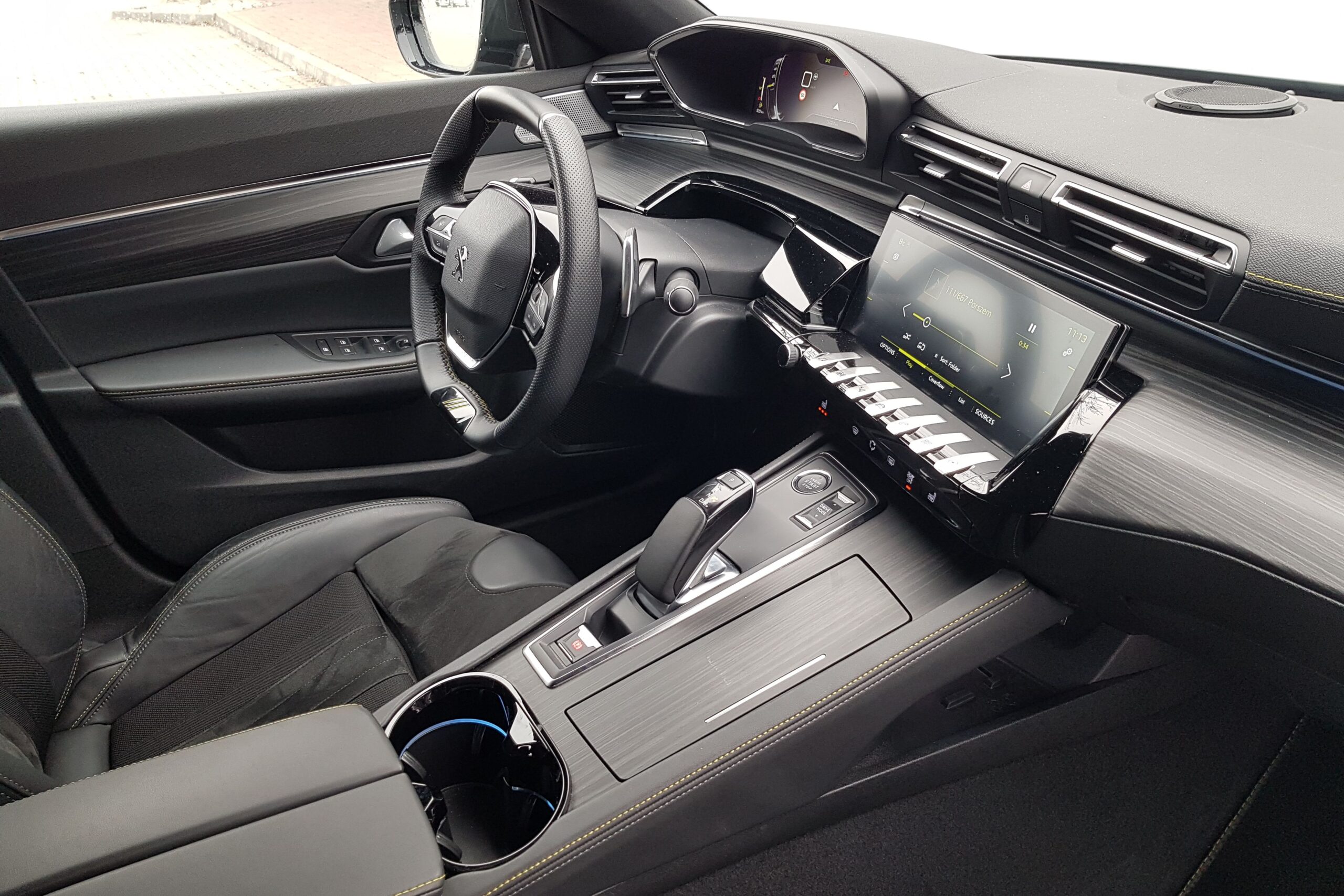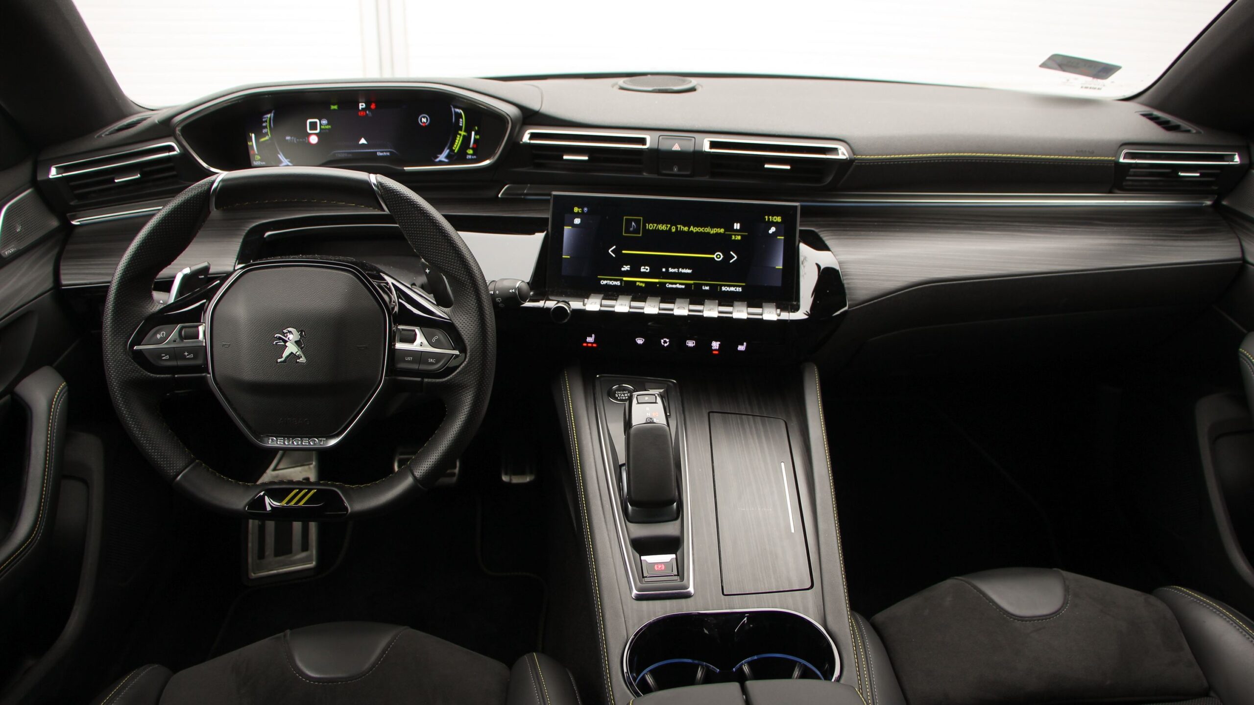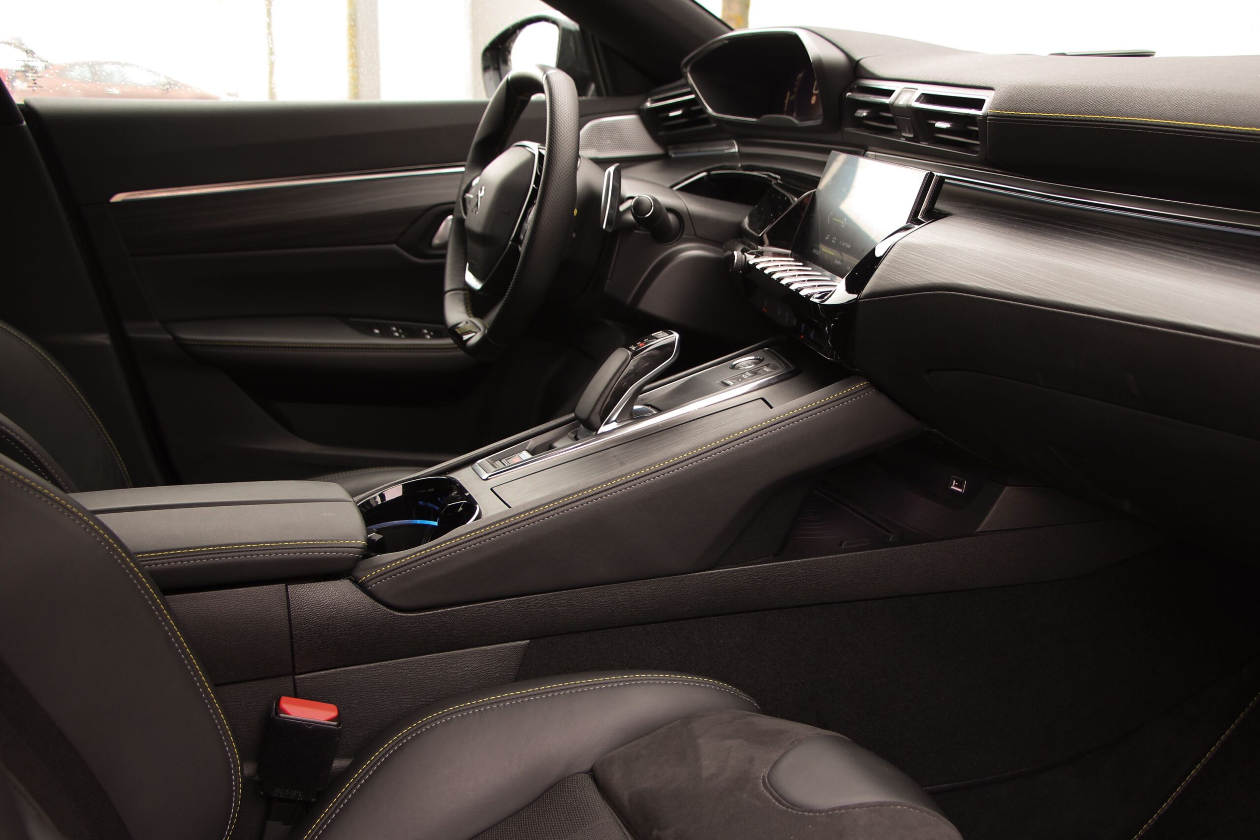 Bent az i-Cocpit miatt már eleve nincs nehéz dolga a Peugeot-nak, hiszen ez eleve hordoz valamennyi sportosságot magában. Az alul-felül lapított kormánykerék alapból hasonlít a versenyautók kormánykerekeire, de megkapjuk még ide is a PSE jelet, sportüléseket, Alcantarát, neonzöld varrást. De azért ügyeltek rá, hogy fabetéttel és zongoralakkal, szóval egy is eleganciával ellensúlyozzák a sportosságot. Amúgy itt is minden a megszokott, és ez jó, mert a 12,3 colos digitális műszeregység szép grafikával mutatja az adatokat, illetve a középkonzol 10 colos érintőképernyőjét sem nehéz kezelni. Ugyanakkor a digitális műszeregységen kissé lassan vált az épp kért információ.