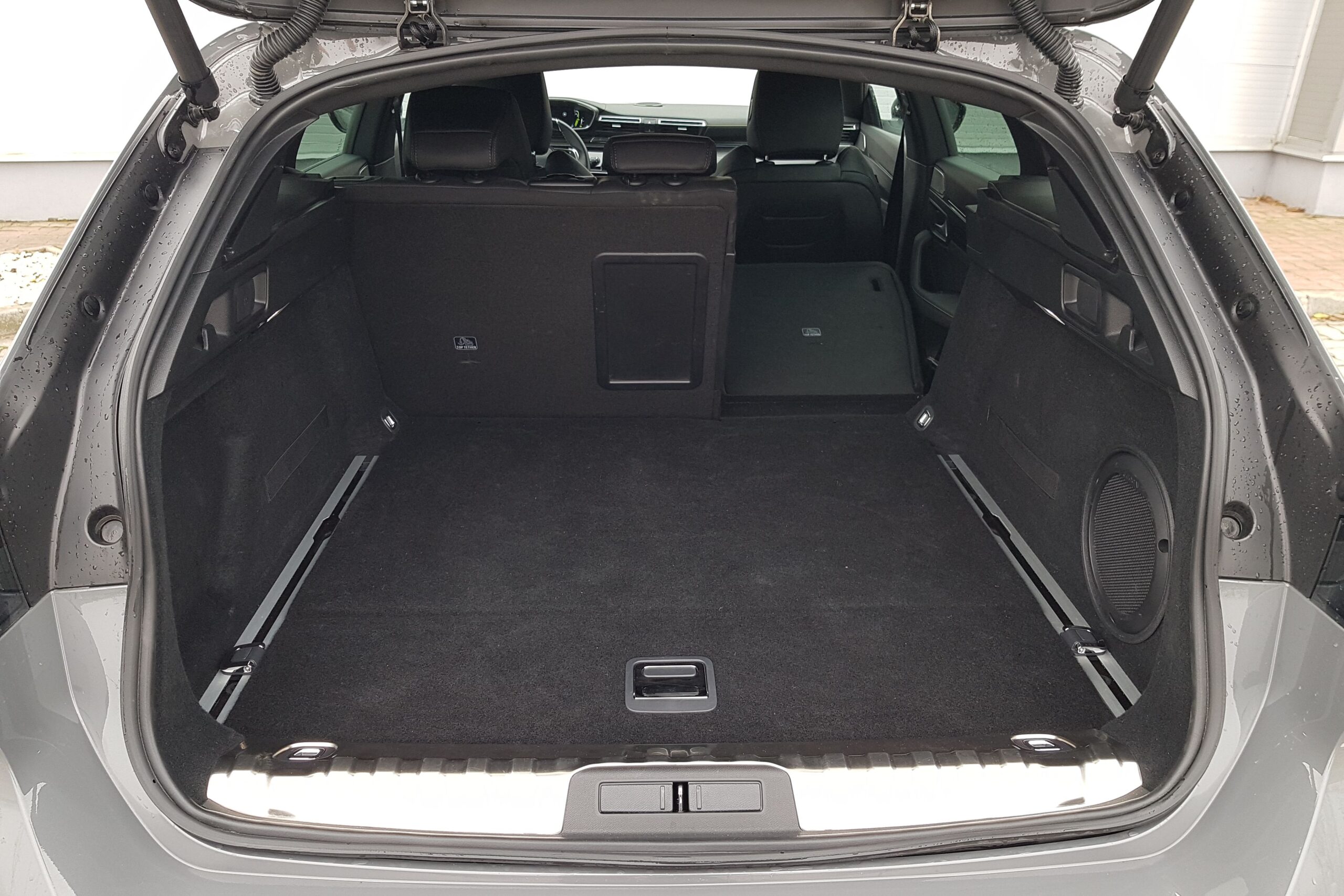 Talán mondanom sem kell, hogy az AGR-tanúsítványos sportülések minden tekintetben kiválóak, sőt még masszírozni is tudnak, ám szerencsére hátulról sem érkezhetnek panaszkodó hangok, bár az tény, hogy a fejtérnél áldoztak egy kicsit a forma oltárán. Sportkombi lévén az alaphelyzetben 487 literes csomagtér is megbocsátható, főleg, hogy 1537 literesre növelhető és a töltőkábelnek is külön rekesz jut, így az nem foglal hasznos helyet.