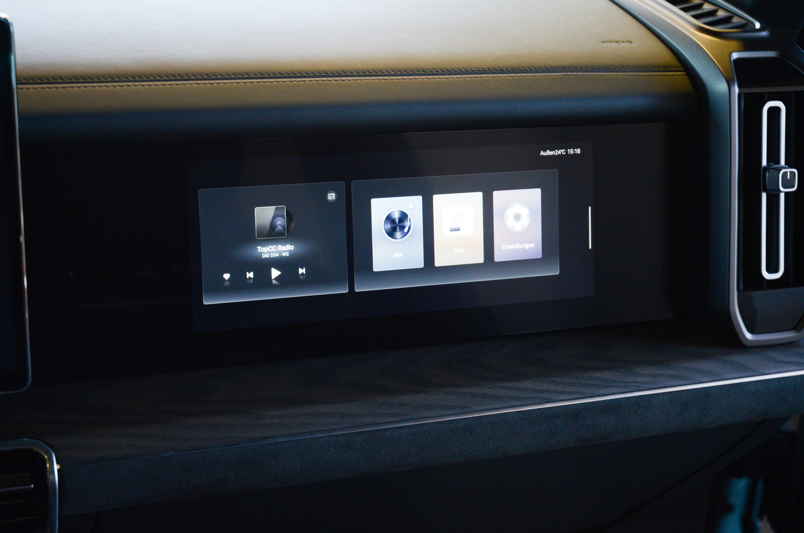 A beltérben is ugyanezt a tematikát folytatták a kínaiak: minden hatalmas, robusztus, tekintélyt parancsoló. Kimondottan érdekes például a váltókar és az elektromos ülésekhez tartozó állítópanel. Képernyőkből sincs természetesen hiány, mindjárt 3 darabot is kapunk a műszerfalra, szintén nem lehet panasz a méretükre.