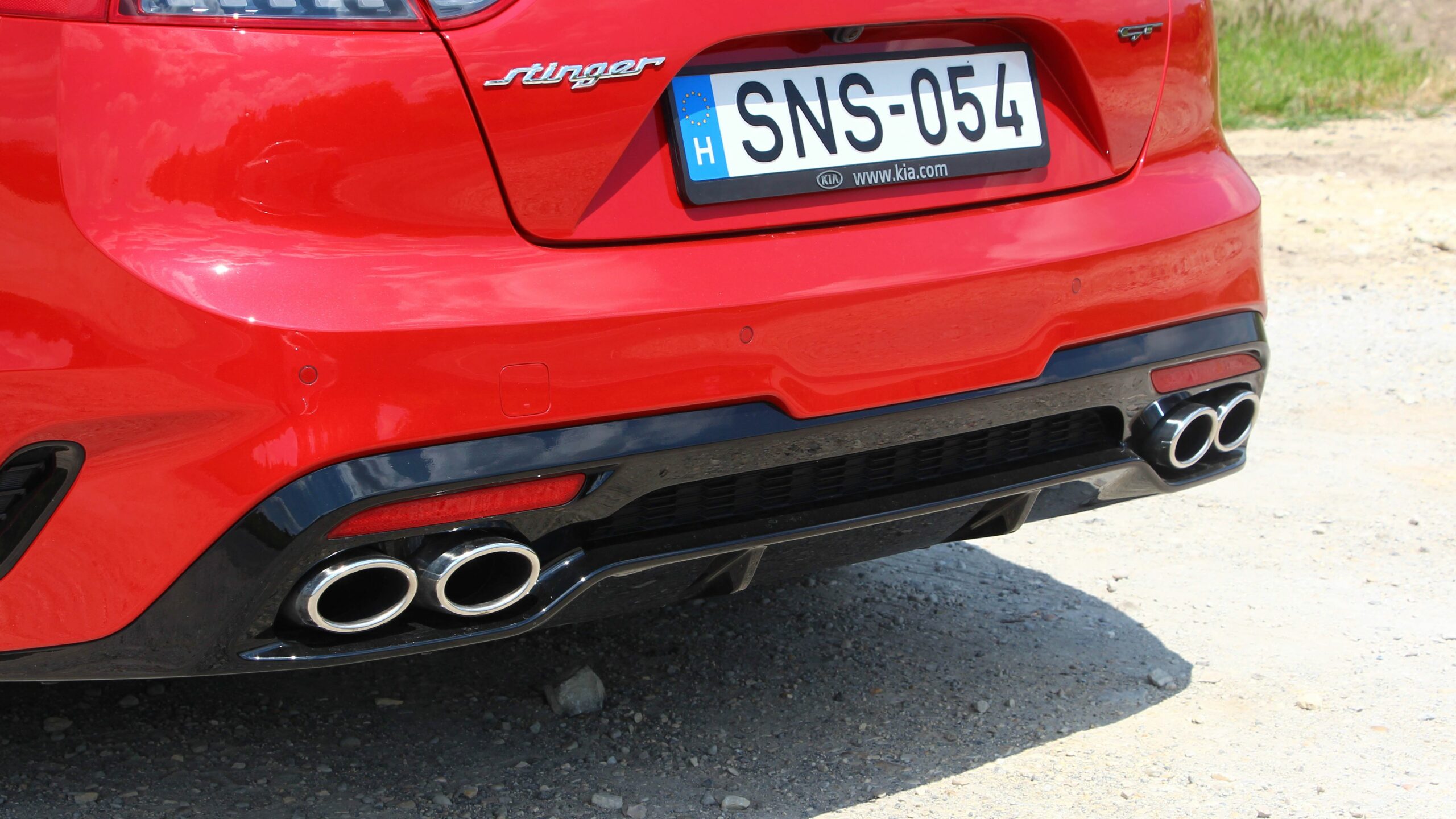 A hátsó lámpákból induló csíkot nem értem, de annyira furcsa, hogy az már szép. A kamu légbeömlők viszont a Stingerről sem hiányozhatnak, ám a kipufogóvégek igaziak