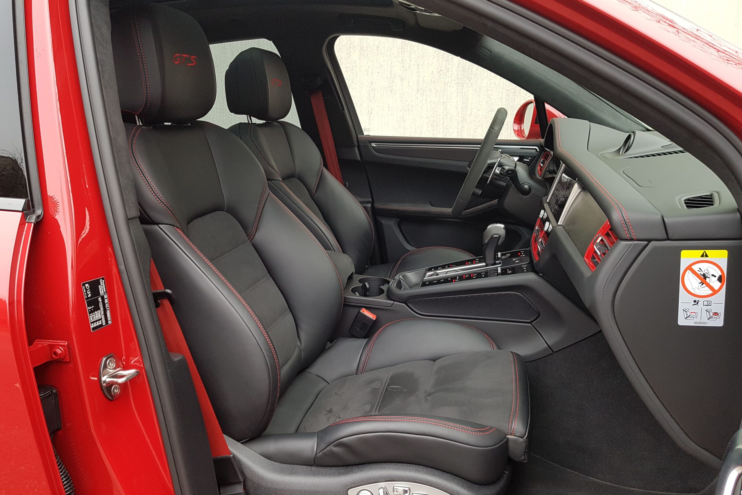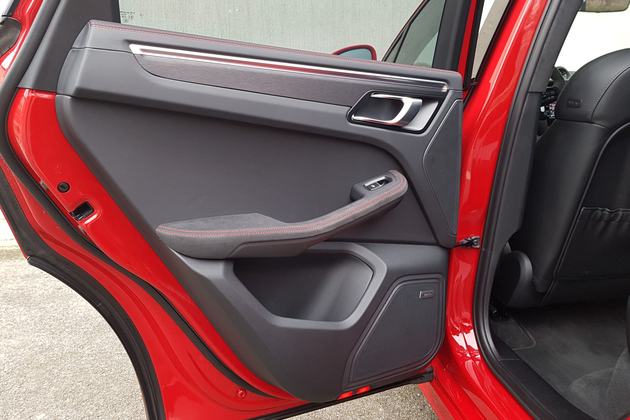 A vezető előtti műszeregység 3 részre osztott, a jobb oldali a digitális, a többi analóg. Jó leosztás, könnyen leolvasható, természetesen a fordulatszámmérő került középre. Ízlésesek még a karosszéria színében pompázó díszbetétek, na meg a szintén vörös biztonsági övek is. A sportülések nagyon jól tartanak, de nem „szorítanak” kényelmetlenül. Vörös cérnát és GTS feliratot ők is kaptak. Kell is, hogy jól tartsanak, mert a Macan GTS izmos jármű!