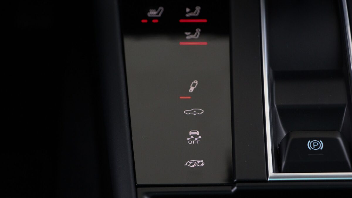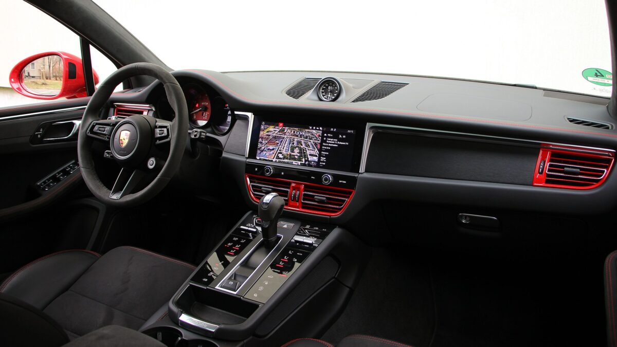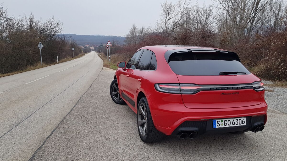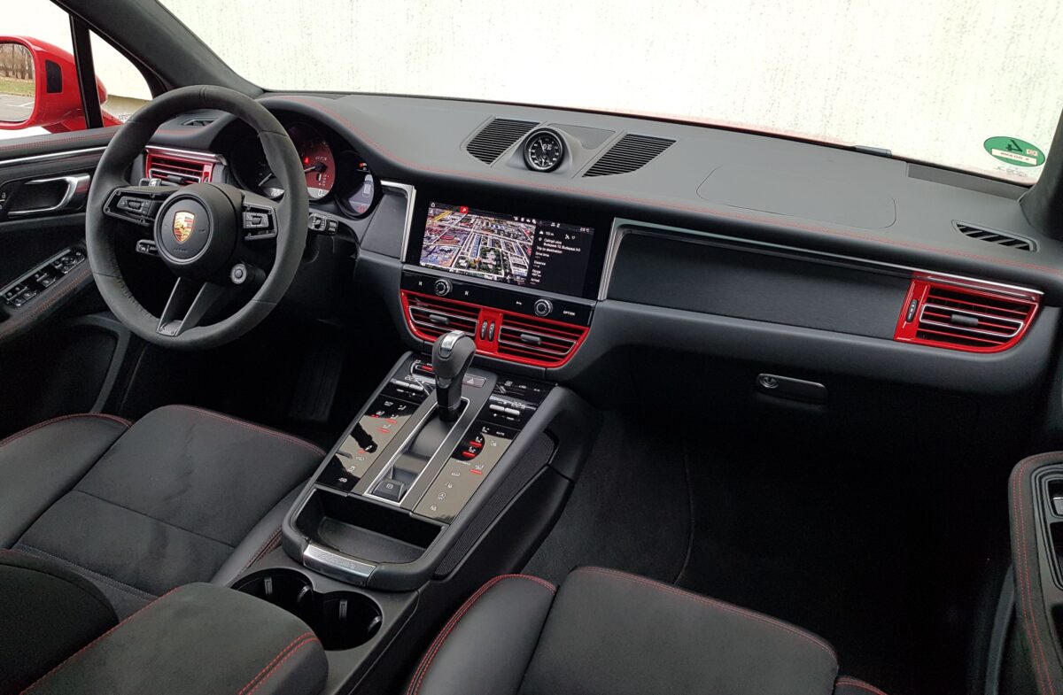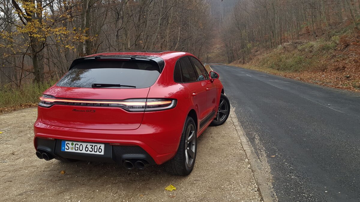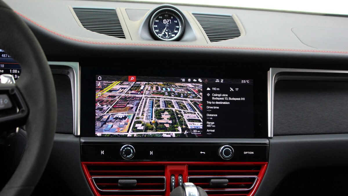 Úgyhogy irány a bal egy, bár hozzá kell tennem, hogy utasnak lenni sem rossz ám a Macanban. Na, jó, mielőtt elöl szöszmötölünk, elmondom gyorsan, hogy ez egy kényelmes, praktikus családi autónak is beillik. Hatalmas a hátsó lábtér, fűthetők a hátsó ülések is, a csomagtér pedig alapból 458 literes, de az ülések lehajtásával 1503 literesre növelhető. Szóval lehet bele pakolni bőven. Na, de vissza előre! A frissítéssel szintet lépett a digitalizáció. Szinte minden fizikai gombot érintősre cseréltek. A kardánalagúton így is jó sok „nyomkodnivaló” maradt, ez ízlések és pofonok kategória, nekem bejön. Főleg az állítható lengéscsillapítók és a kipufogó hangjának változtatása, mert bizony ilyeneket is tud a GTS. Szintén új a kormánykerék, ami a 911-ből érkezett, itt Alcantara borítású, és kiváló a fogása. És itt most ez nagyon komolyan értendő.