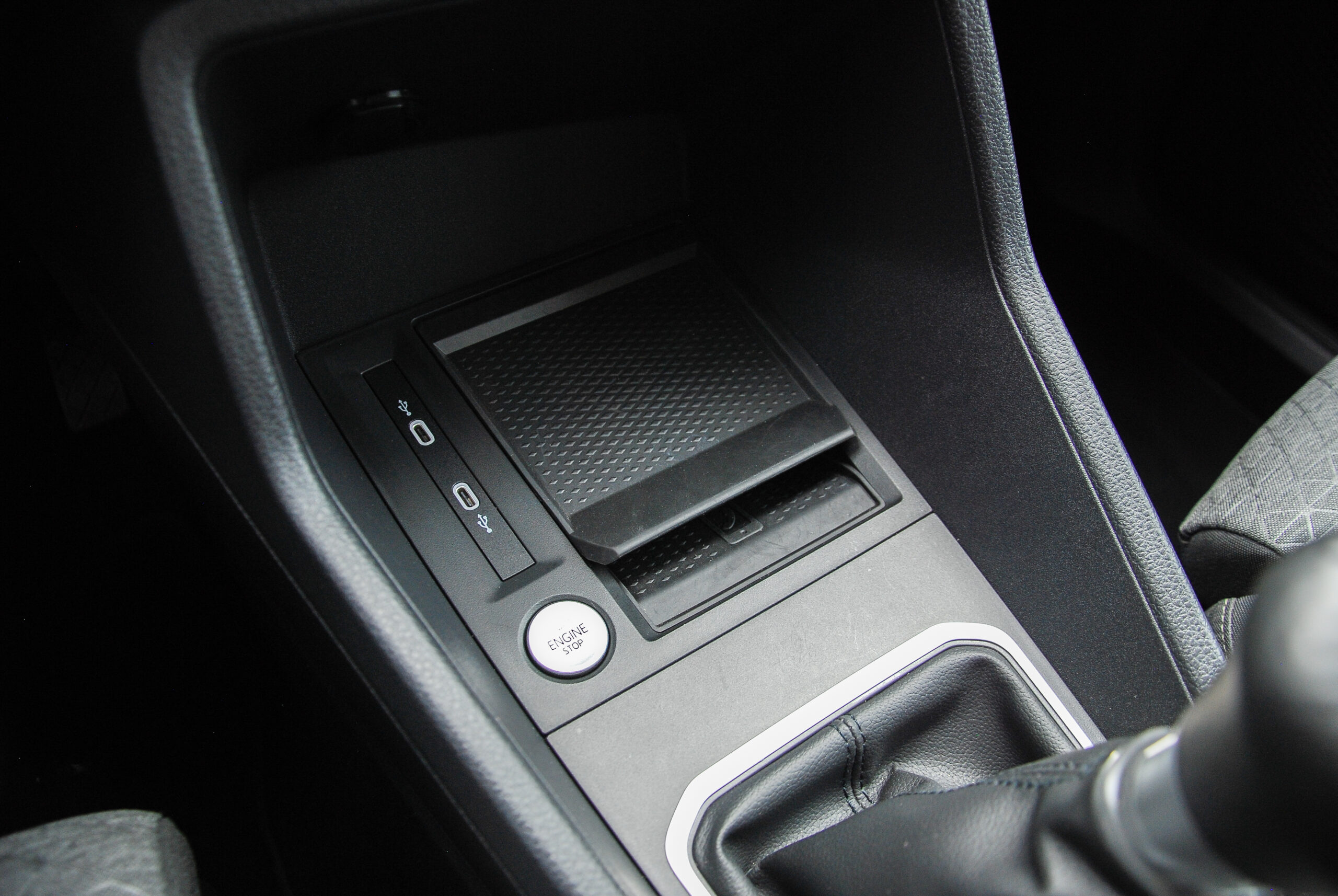 A legtöbb műanyagelem változatlan, üdítő kivétel ezalól a középkonzol telefontartós megoldása