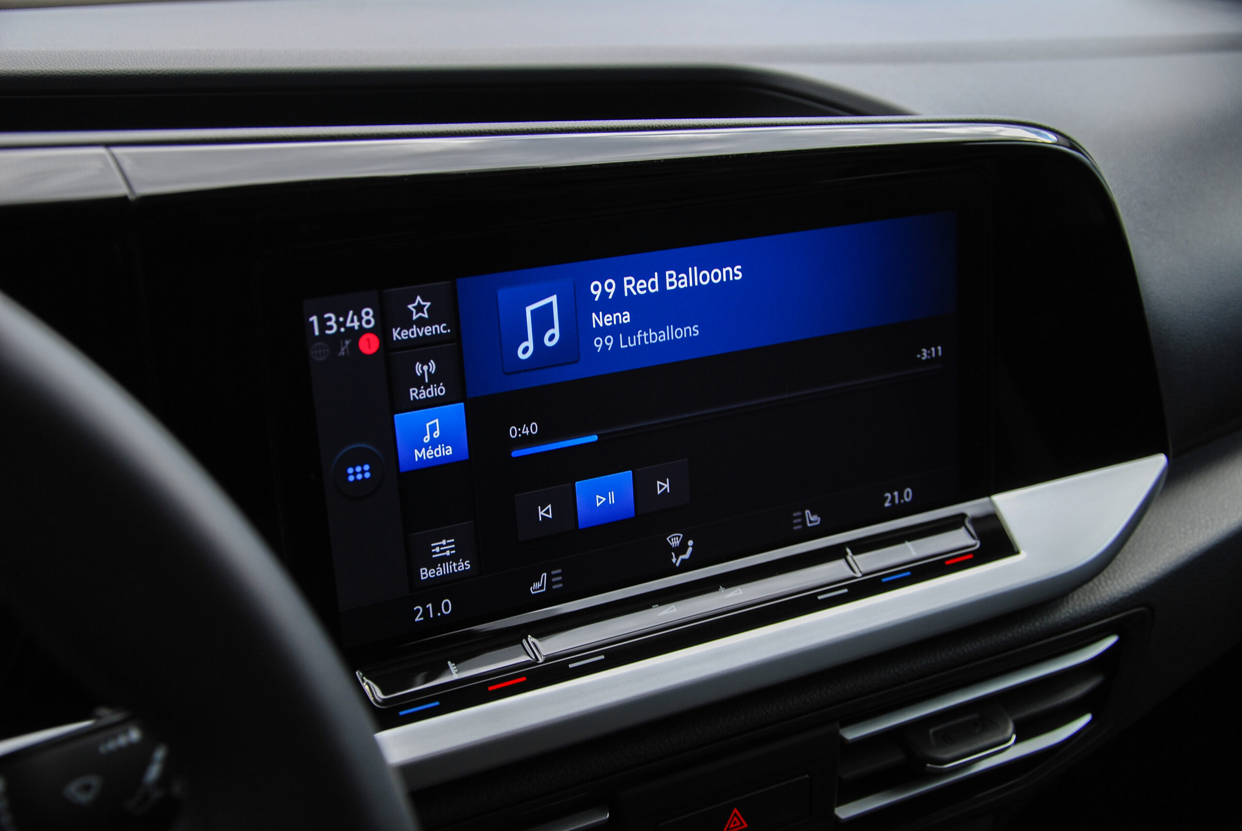 Az óracsoport valódi mutatókkal és egy monokróm középső kijelzővel operál, míg a 10,25 colos, feláras központi érintőkijelzőn a Volkswagen infotainment rendszere fut a Ford dizájnjába öltöztetve