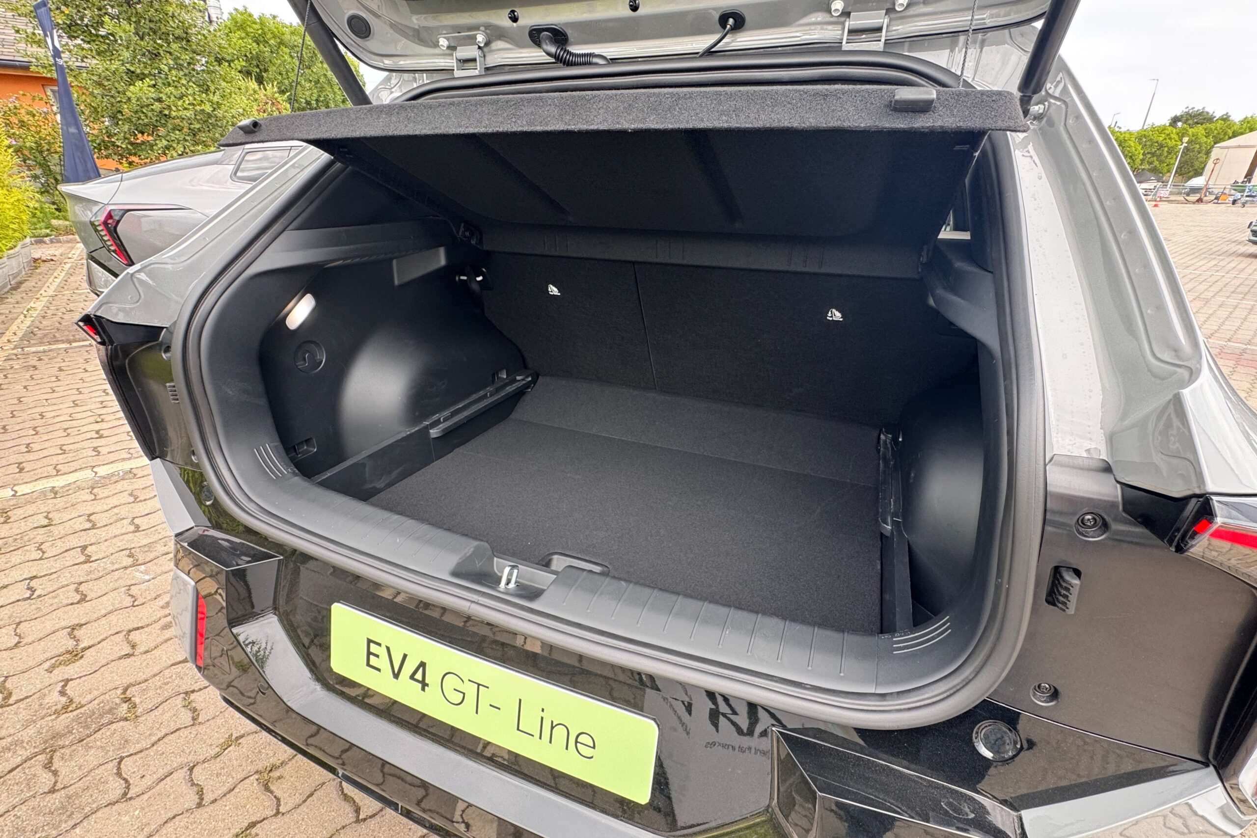 Belül és a lemezek alatt azonban nagy a hasonlóság. A lebegő középkonzol a két nagy digitális kijelző, a kormánykerék mind-mind az EV3-ból lehet ismerős, viszont ez azt is jelenti, hogy ugyanúgy kiváló az ergonómia és a kényelem. Csomagterük mérete között sincs olyan nagy különbség, az ötajtó 435 literes, míg a négyajtós alapból 490 literes, ám utóbbinak kicsit szűkebb a rakodónyílása.