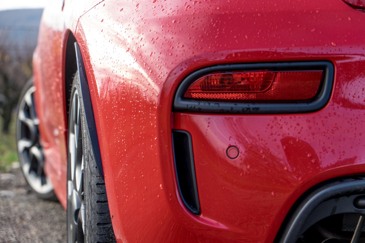 Futóműve betonkemény, a Koni gátlók nem viccelnek, ellenben egy millimétert nem dől a karosszéria kanyarban. Kit érdekel, hogy a multimédia már megint nem kapcsolt be? Hogy az ajtóborítás kritikán aluli, meg úgy általában az anyagok. Az se zavar, hogy az index sosem kapcsol úgy, ahogy szeretnénk, általában úgyis hamarabb hagyjuk el a helyszínt, minthogy bárkinek feltűnt volna, hogy kanyarodni akarunk. Az egész olyan, mintha felgyorsítva történne minden, nem kell gyorsan menni ahhoz, hogy gyorsabbak legyünk mindenkinél, bőven elég, hogy nem kell elvennünk a gázt kanyar előtt. Rossz vele megállni, na, nem a luggatott, elöl négydugattyús Brembo fékekkel van baj, hanem azzal, ha le kell tenni. Az Abarth 595 a kisördög a válladon, aki folyton azt suttogja a füledbe, hogy gyere játszani! És mivel a kisangyalt a másikon már rég megkötözte és bedobta egy folyóba, nincs ki megpróbálna meggyőzni az ellenkezőjéről.