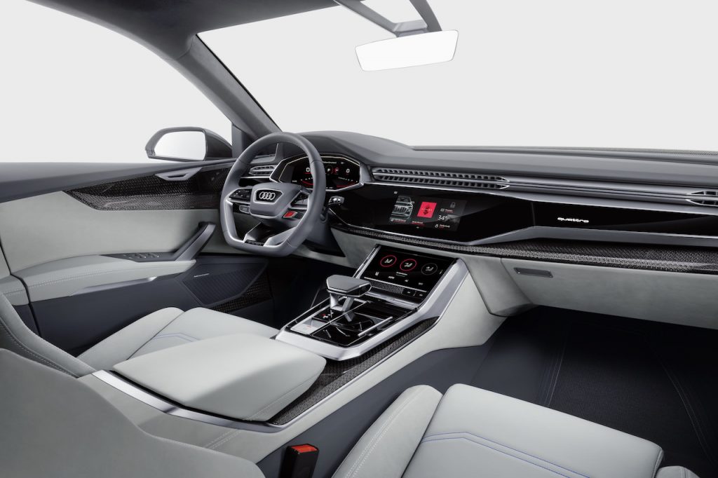 Az utastérben is hagyományos gombok válthatják az érintésérzékenyeket, a digitális műszerblokk viszont minden bizonnyal megmarad, legalább opcióként. Alapáron bizonyára a koncepciómodellénél hagyományosabb hátsó ülést kap majd a Q8, de opcióként akár a két szeparáltabb, tablet-szerű kezelőfelülettel elválasztott fotelpár is elérhető maradhat. A motorpaletta biztosan fog kínálni dízelt, de megmaradhat a koncepcióban látott 333 lóerős 3,0 literes TFSI V6 benzinmotor és 135 lóerős villanymotor párosából álló hibrid hajtáslánc is. Utóbbival a tanulmányautó 5,4 másodperces 100 km/órára gyorsítást és 60 kilométeres emissziómentes hatótávot ígér, mindössze 2,5 órás töltési idő mellett.