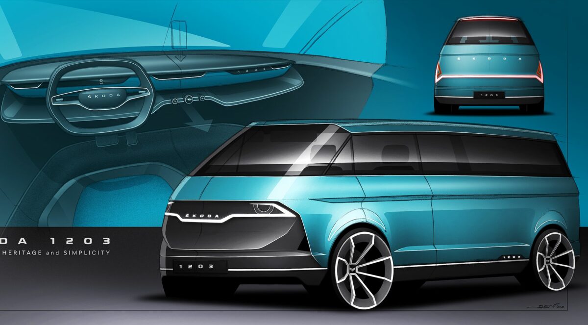 Érdekes projektet indított a Skoda: minden hónapban előrukkoltak egy rég letűnt modelljük reinkarnációjával, igaz csak skiccek formájában. A 1203 már az ötödik a sorban. Elkövetője egy bizonyos Daniel Hájek, aki természetesen a Skodánál dolgozik dizájnerként. Többnyire felhasználói felületeket tervez, ám most kapott egy lehetőséget, hogy távolabbra kalandozhasson a fantáziája. Mivel gyerekkori emlékek fűzik a 1203-ashoz, nem volt nehéz dolga a megrajzolásával. 15 éves korában a családjuk is használt egy ilyen masinát, ez volt az első jármű az életében, amit vezethetett.