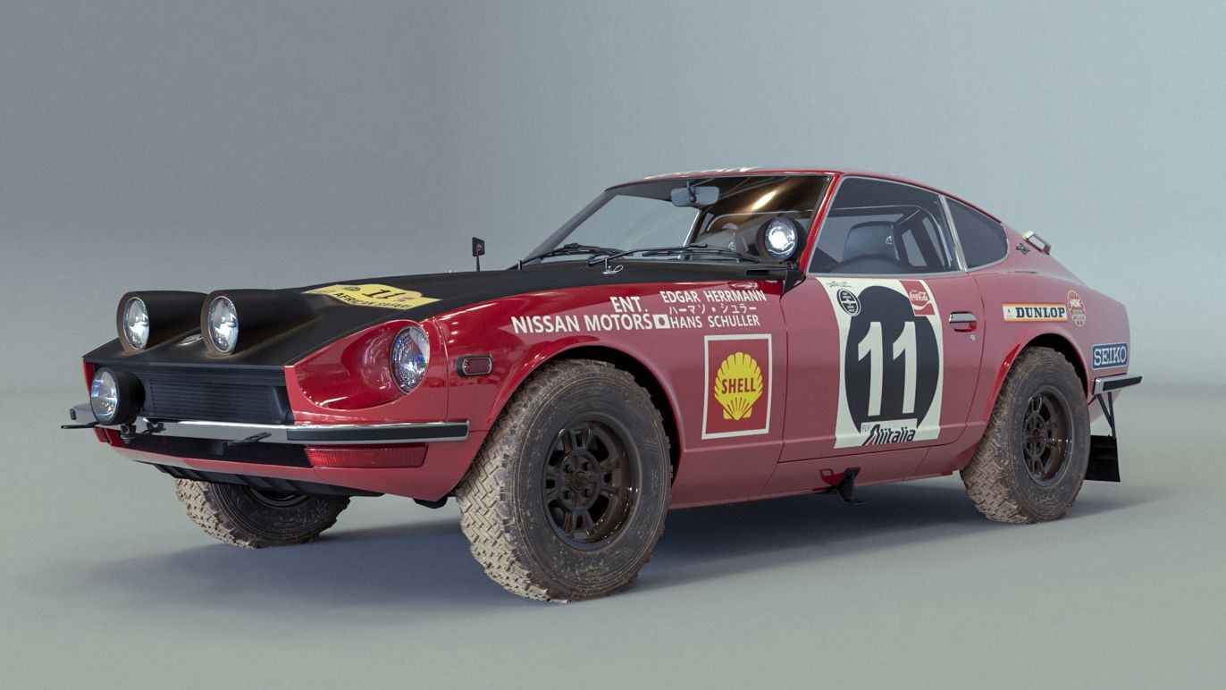 Mivel ez a Juke akár tereprali versenyekre is jó lenne a magasságát tekintve, akár a Dakaron is indulhatna. Jóval nagyobb kerékjárati íveket kapott, hogy a vaskos terepgumik elférjenek alatta, illetve extra fényszórókat a motorháztetőre, illetve a tetőre, ami nem szokatlan a Safari Rallykon. Az autó fényezése is utalás, az 1971-es Datsun 240Z-re, amely elhozta az aranyérmet. Ráadásul azt az autót is leképezték a virtuális térben, hogy aki nem ismerné, biztosan megértse a párhuzamot. A renderelt rali-Juke már csak abból az apropóból is érdekes, hogy idén visszatért a Rali Világbajnokság mezőnye a legendás versenyre, igaz a Nissan nélkül.