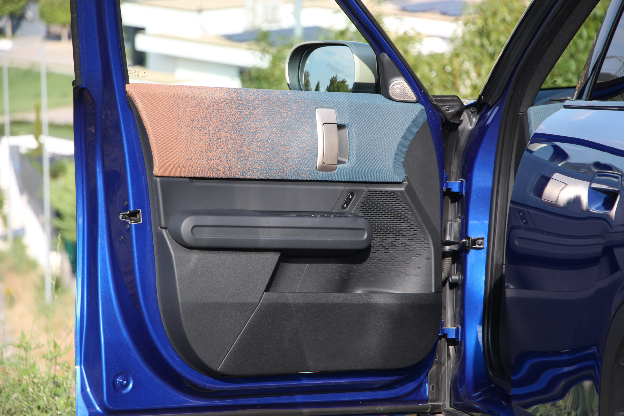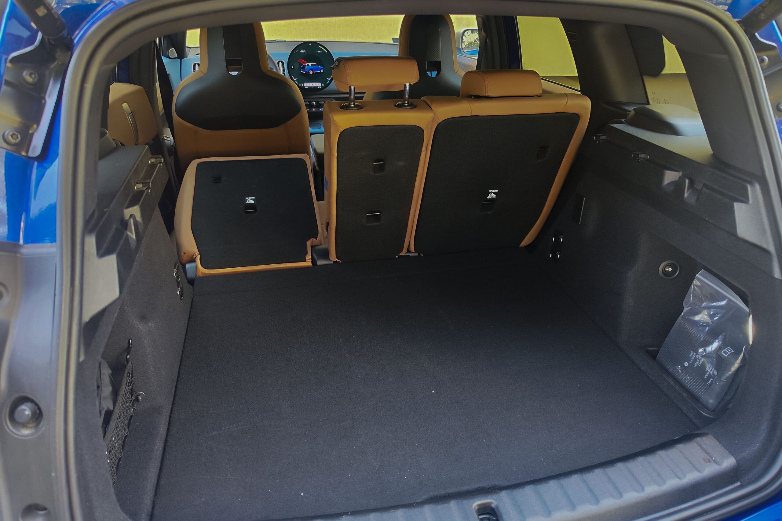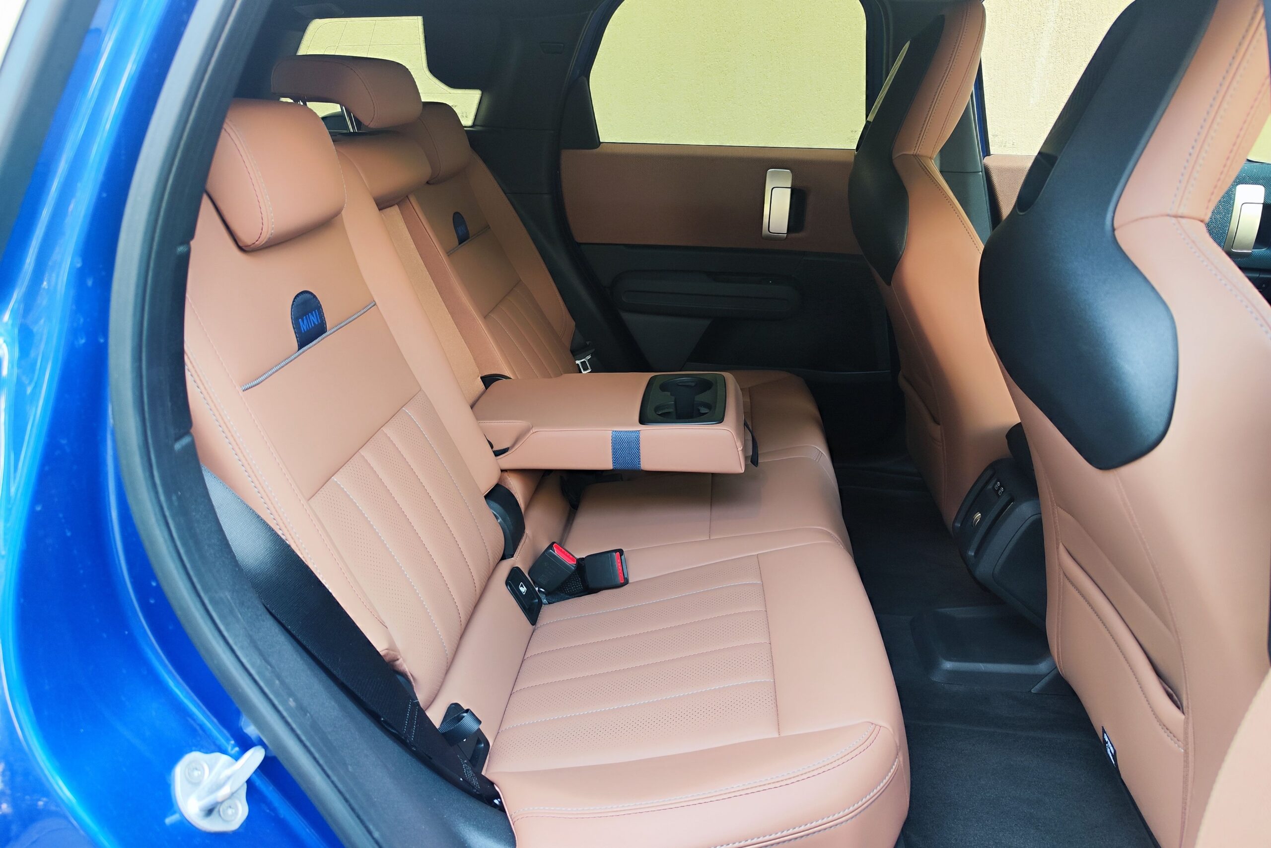 A növekedés jót tett az utastérnek is. Elül-hátul tágas az autó, habár elöl az ülések nagyszerű megjelenésűek a világosbarna vegán (műbőr) az oldaltartásukon még lehetne javítani. Viszont hátul meglepően nagy a lábtér és itt a hosszú utakon sem lehet itt fárasztó az ücsörgés. Azt viszont csak később árulom el, hogy mennyire lehet hosszú az utazás az akkumulátoros elektromos Minivel.