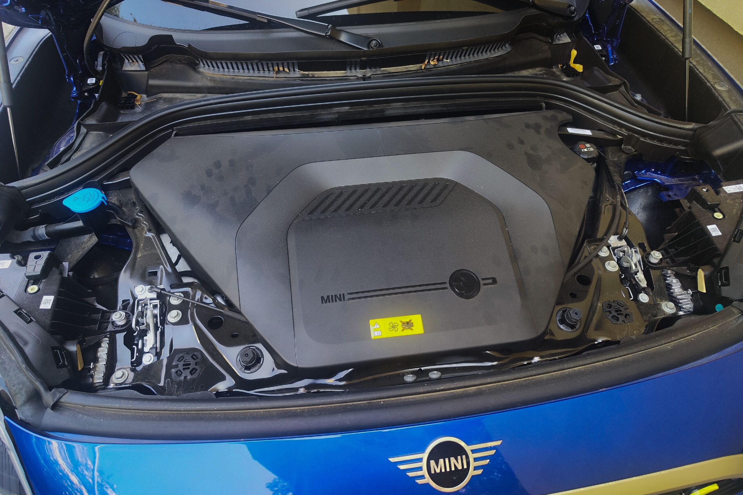 Elöl nincs csomagtér, hiszen olyan platformra épül az autó, amelyre belső égésű motoros, illetve hibrid modellek is felépíthetők. Így hát a burkolat alatt az egyik villanymotor dolgozik az első tengelyen. Bizony, az All4 változatban két elektromos egység is helyet kapott, a másik természetesen a hátsó tengelyen teszi a dolgát és így lesz összkerékhajtású az autó. A rendszerteljesítmény óriási: 313 lóerő. Ehhez 494 Nm forgatónyomaték társul, így 5,6 másodperc alatt százon van Countryman SE, szóval harapós egy jószág, de az üresen is kettő tonnát nyomó Minivel nem a kanyarvadászat lesz a kedvenc elfoglaltságod. De egy SUV nem is arra való.