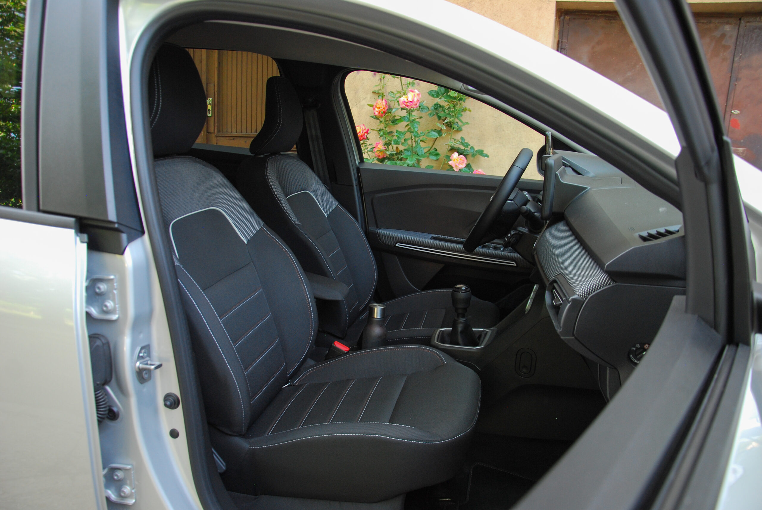 Az első két ülésen furcsa érzés fogja el az avatott szemeket: itt bizony már jártunk, ez ugyanis egy az egyben az új Dacia Logan és Dacia Sandero műszerfala, illetve első ülései. Tudatos spórolás és egyszerűsítés ez a Daciától, így ugyanis kevesebbet kell tervezni, és kevesebb különféle alkatrészre szakosodott gyártósort kell fenntartani. Ennek ellenére minden, de tényleg minden megvan benne, amire az átlagos sofőrnek szüksége lehet: 4 elektromos ablak, kulcs nélküli nyitás, zárás és indítás, telefontükrözés funkciós érintőképernyő, egy meglepően korrekt hangcucc, és persze rengeteg hely.