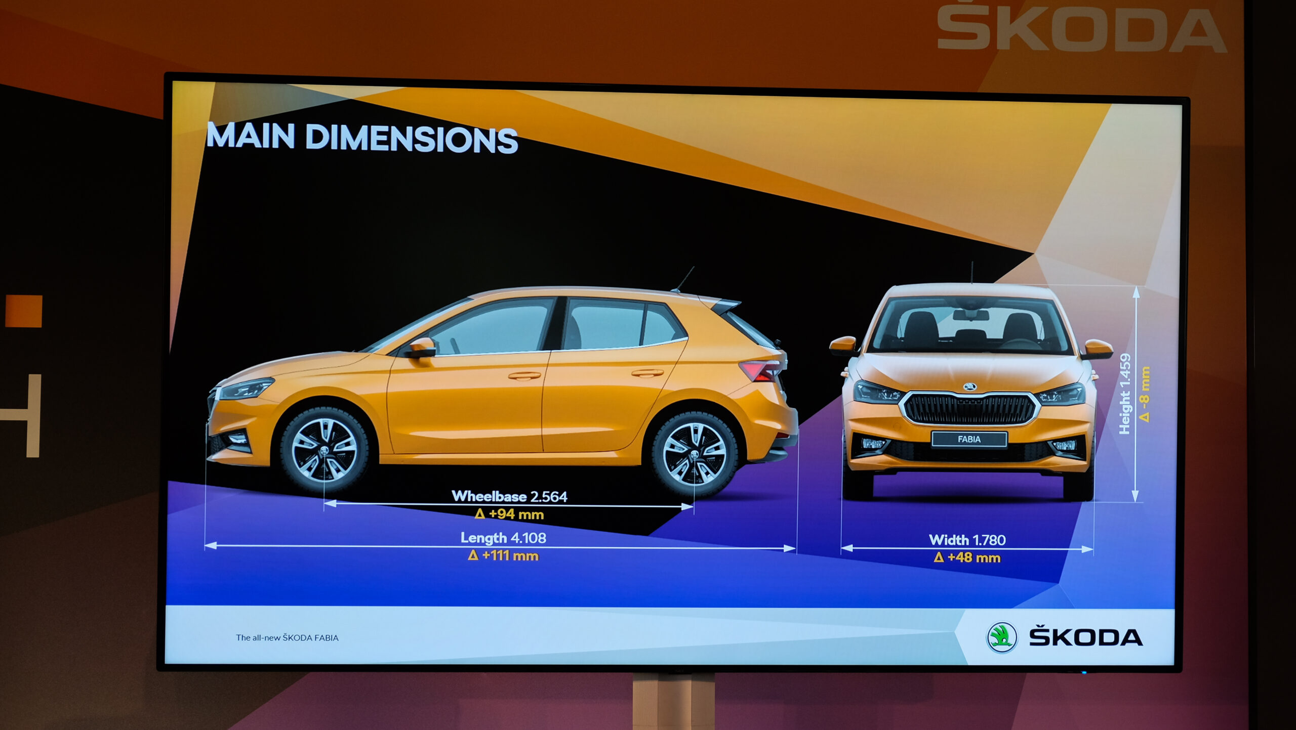Az új Fabia legfőbb ütőkártyája továbbra is az ár/érték arány lesz - ígérik a gyáriak, viszont mivel 11,1 centivel hosszabb lett, s a tengelytávja is nőtt 9,4 centivel, azaz ma hosszabb, mint egy Golf III, de a Golf IV-nél is csak 6 centivel rövidebb, ugyanakkor 5 centivel nagyobb tengelytávolságú (és így az első modern Octaviánál is!). Könnyű ráébredni, ez a "kisautó" már gyakorlatilag egy kompakt modell. Alapjait az MQB-A0 platform adja, ahogyan az aktuális Volkswagen Polo vagy akár a Skoda Scala esetén. Ne lepődjünk hát meg, hogy 4,8 centivel szélesebb is a korábbinál, magassága ugyanakkor 0,8 cm-rel csökkent. Helykínálata parádés, magam mögé ülve (179 centivel), még több ujjnyi tér maradt a térdeim előtt.