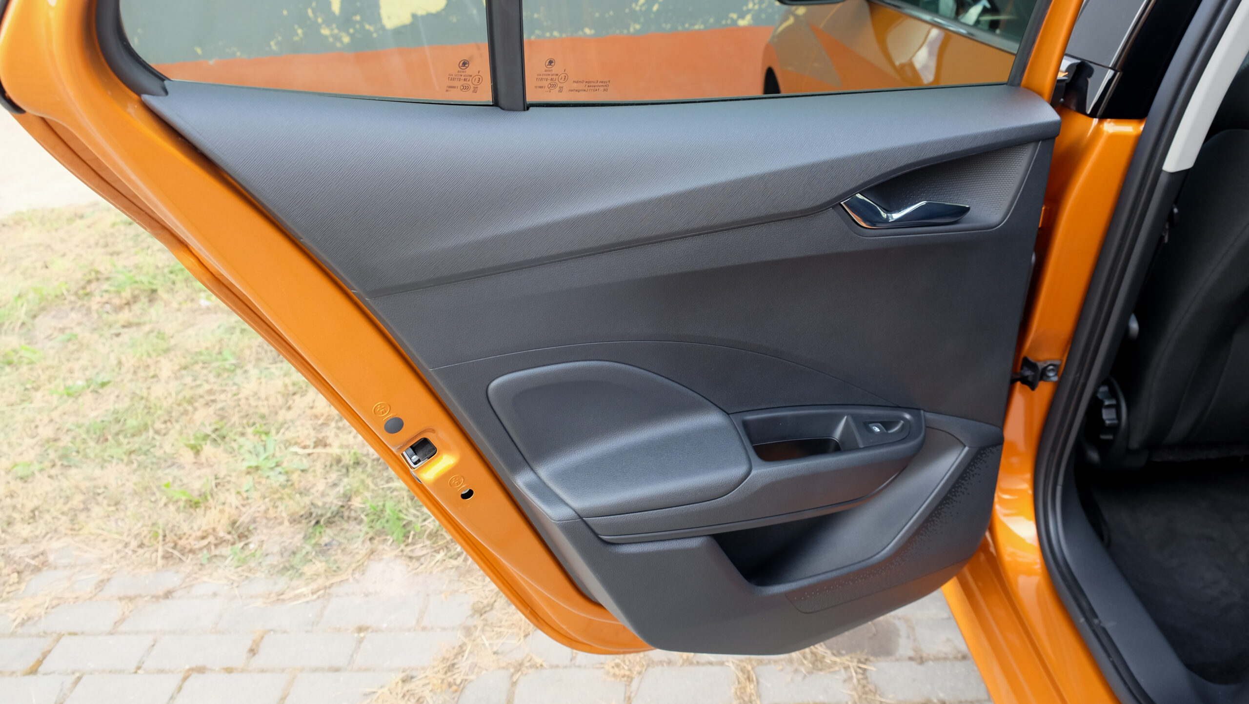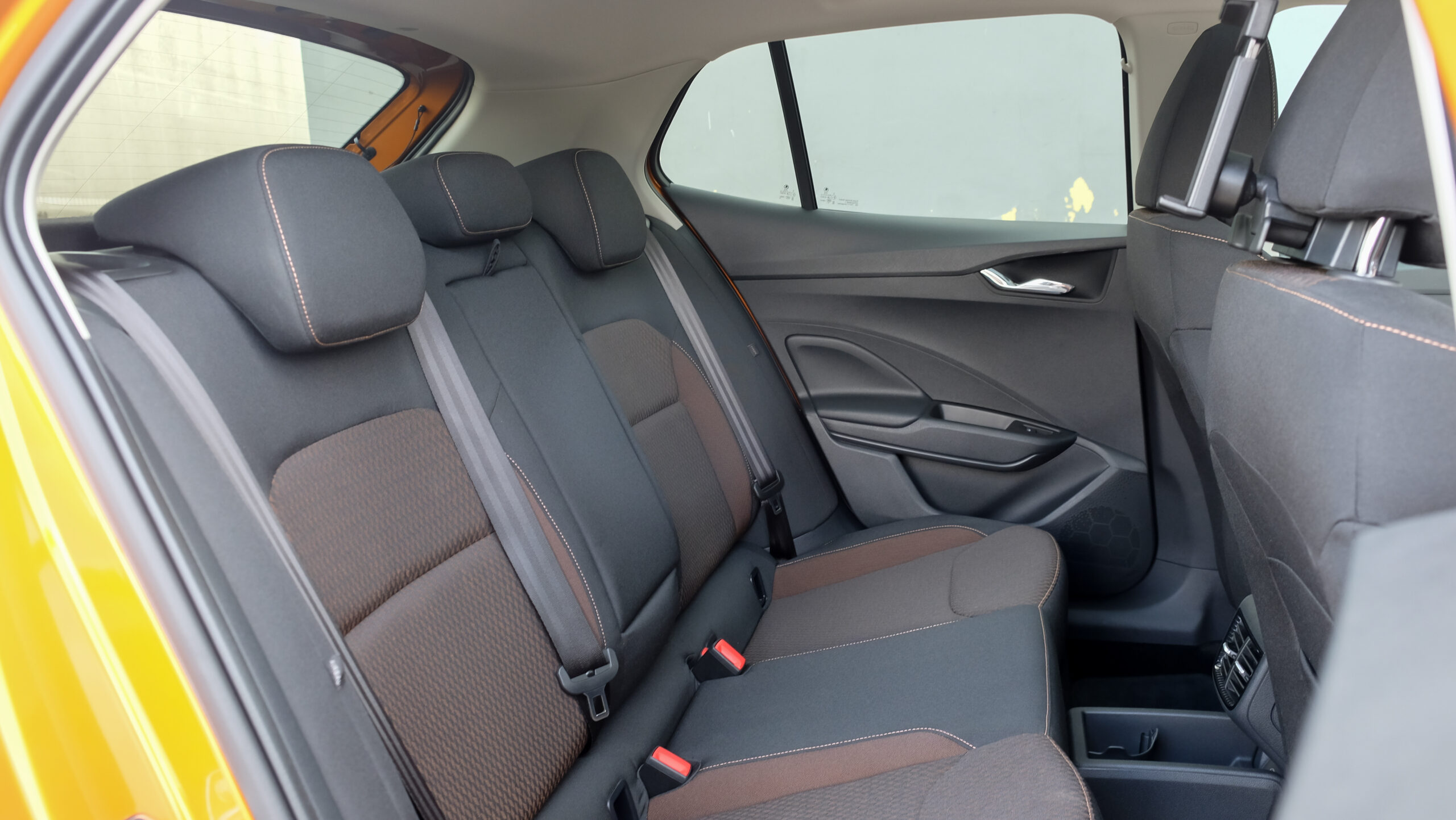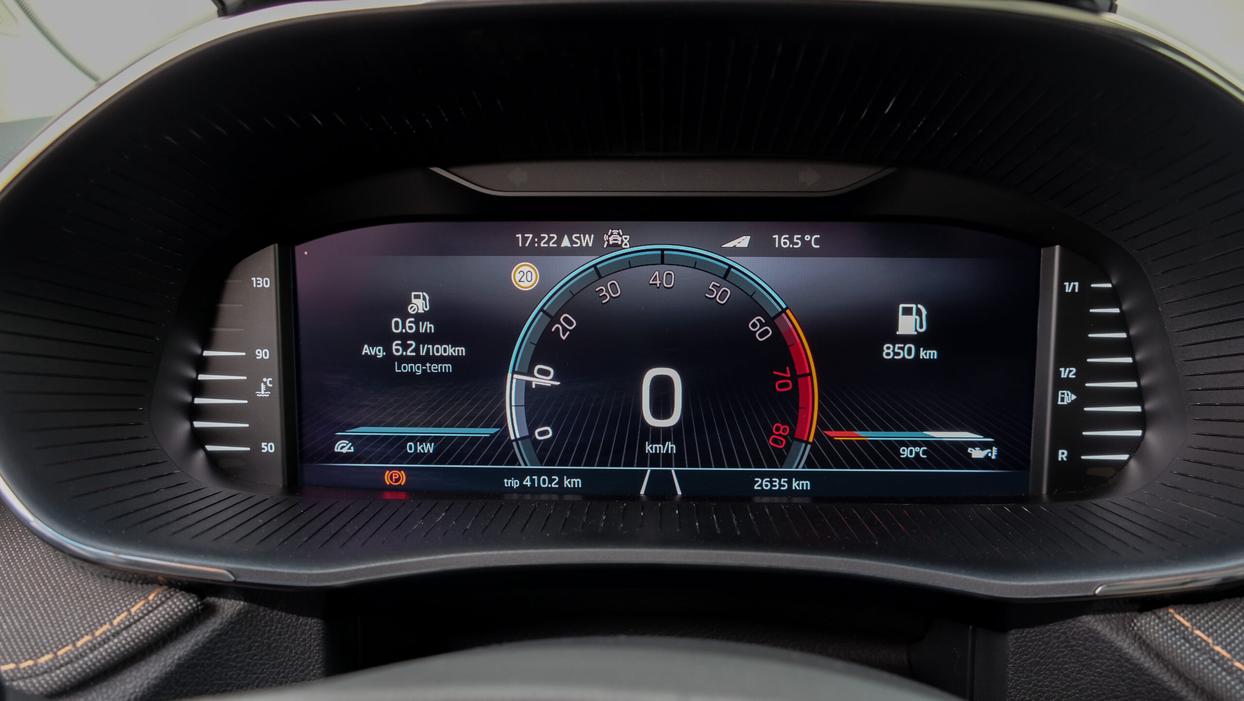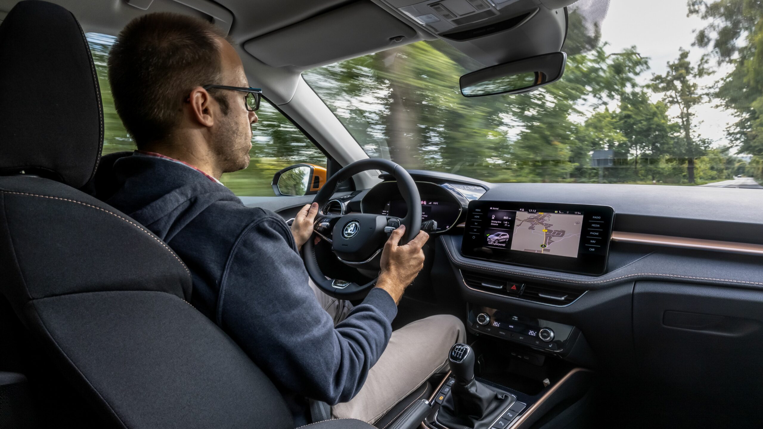 Bár a középkonzolra különálló kijelző került, széles formátuma miatt nem lóg ki nagyon a műszerfalból. A kijelző felbontása fenomenális, átmérője akár 9,2 col, oldalain pedig dedikált érintőgombok is segítik a menüben eligazodást. Jó hír, hogy az automata klíma dedikált kezelőpanelt, vakon is elérhető tekerőkapcsolókat kapott. Legalább ennyire fontos, hogy a negyedik generációs Fabia is kapott egy csokornyi, korábban csak felsőbb kategóriákban elérhető opciót, például már fűtőszálas szélvédő és fűthető kormánykerék is elérhető hozzá, akár 3 küllős kivitelben, a DSG-váltó kapcsolóival együtt. Opcióként a légkondi már kétzónás is lehet, de megjelentek a hátsó légbefúvók is, 2 darab USB-C csatlakozóval. Meg persze pakolórekesz is elérhető oda is, ami mondjuk az ötödik ülőhely lábterét igencsak lecsökkent, de még egy hely, ahova lehet pakolni, ha csak négyen utazunk. Összesen akár 16 rekesz, 108 liternyi térrel tölthető meg az utastérben.