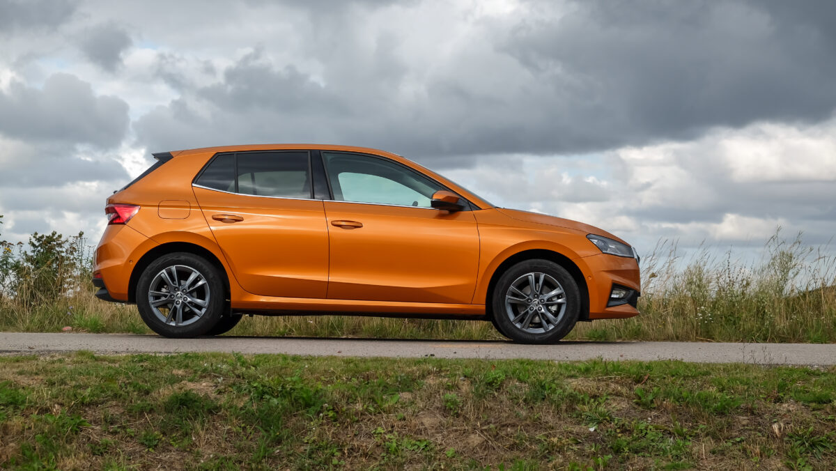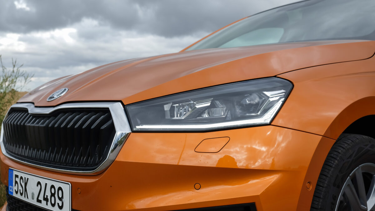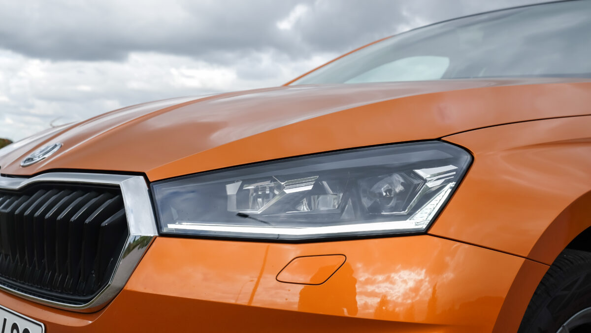 Kevéssé meglepő módon a Fabia a kisautó-szegmens legnagyobb helykínálatát adja, ez persze egy Skoda esetén már-már magától értetődő. Ugyanakkor messze nem csak ez az ütőkártya, a dizájn teljesen koherens a márkatársakkal, ugyanakkor messze nem öncélú. Egyrészt remek, kategóriabajnok 0,28-as alaktényezőt hozott, hogy nem csak szélcsatornában, hanem numerikus áramlástani szimulációkkal (3 év alatt több mint 3000 számítással) is vallatták a formát, ugyanakkor nagyon sok apró finomság is jutott a külső és a belső formatervbe is. Az első ajtók háromszög-motívumai például a cseh zászlóra utalnak, a csomagtérajtón műanyag légterelő generál némi leszorítóerőt. Gyönyörűek az akár elöl is teljesen LED-es lámpák, de nem csak a vonalak jók, a Fabia merevsége is sokat javult az új platform által, az A- és a B-oszlopok, valamint a váltóalagút is ultranagy szilárdságú acélból épül. A karosszériában utóbbiak aránya 15-ről 40%-ra nőtt, míg a legalább nagy szilárdságú elemeké csaknem 80%-ra.