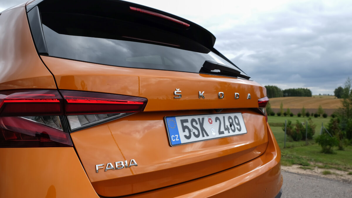 Ahogyan az ma megszokott a Skodától, már a Fabia is jókora feliratot hord csomagtérajtaján az embléma helyett