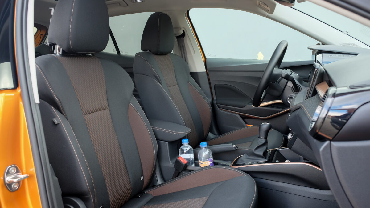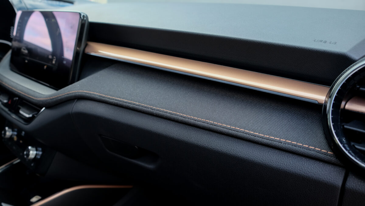Jó fogású a kétküllős kormány, a szerkezet elektromechanikus rásegítésű, az anyagminőség hibátlan, az ajtókra és a műszerfal tetejére is kellemes tapintású és megjelenésű, enyhén puha plasztik került