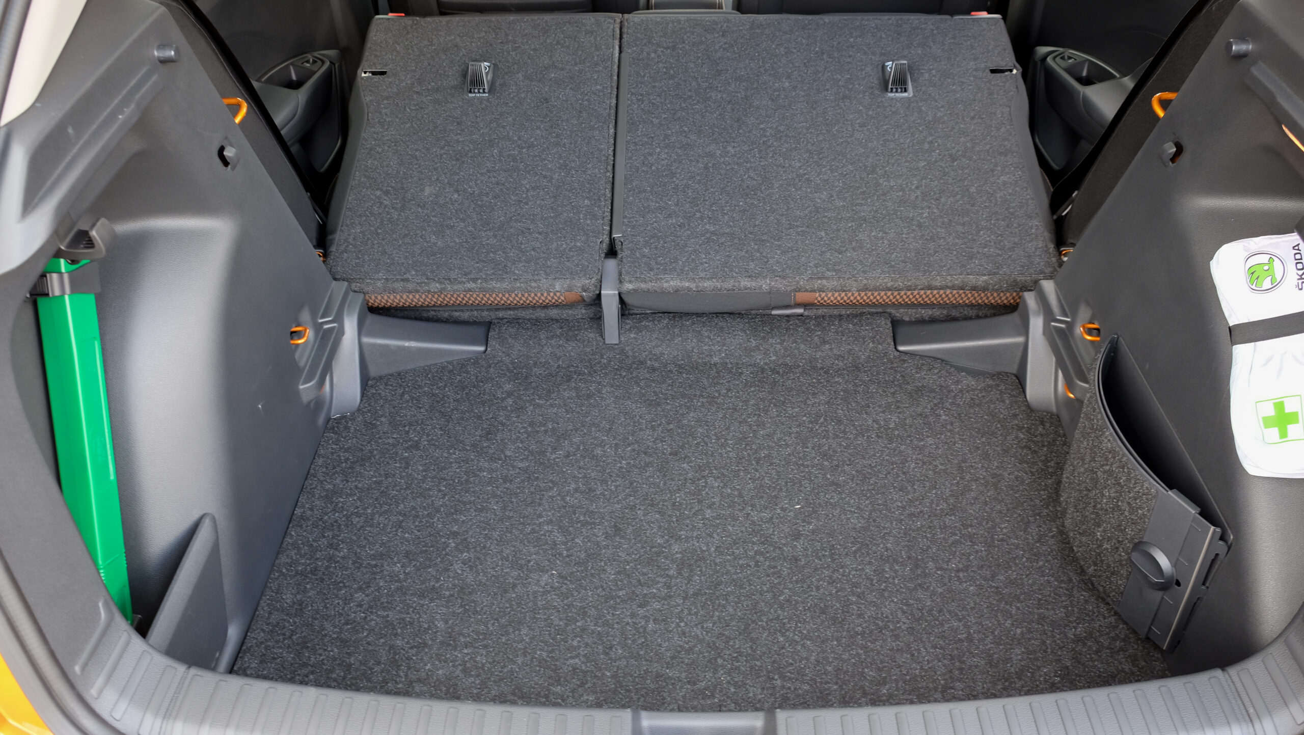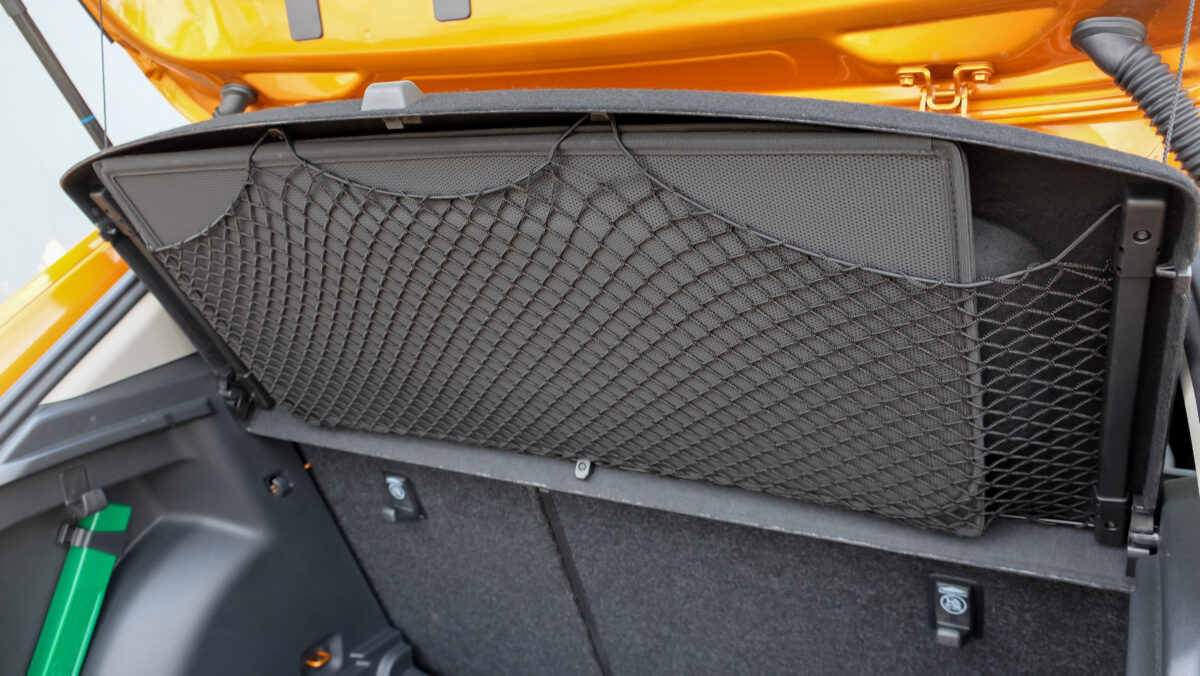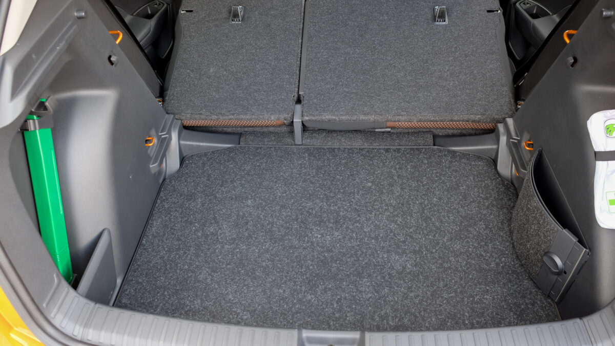 Döbbenetesen nagy a csomagtér, alja kárpitozott és kosztűrő oldallal is rendelkezik, a bővítéshez az utasülés támlája is síkba fektethető