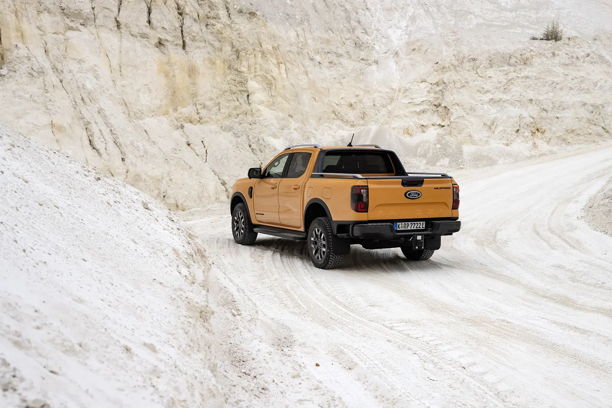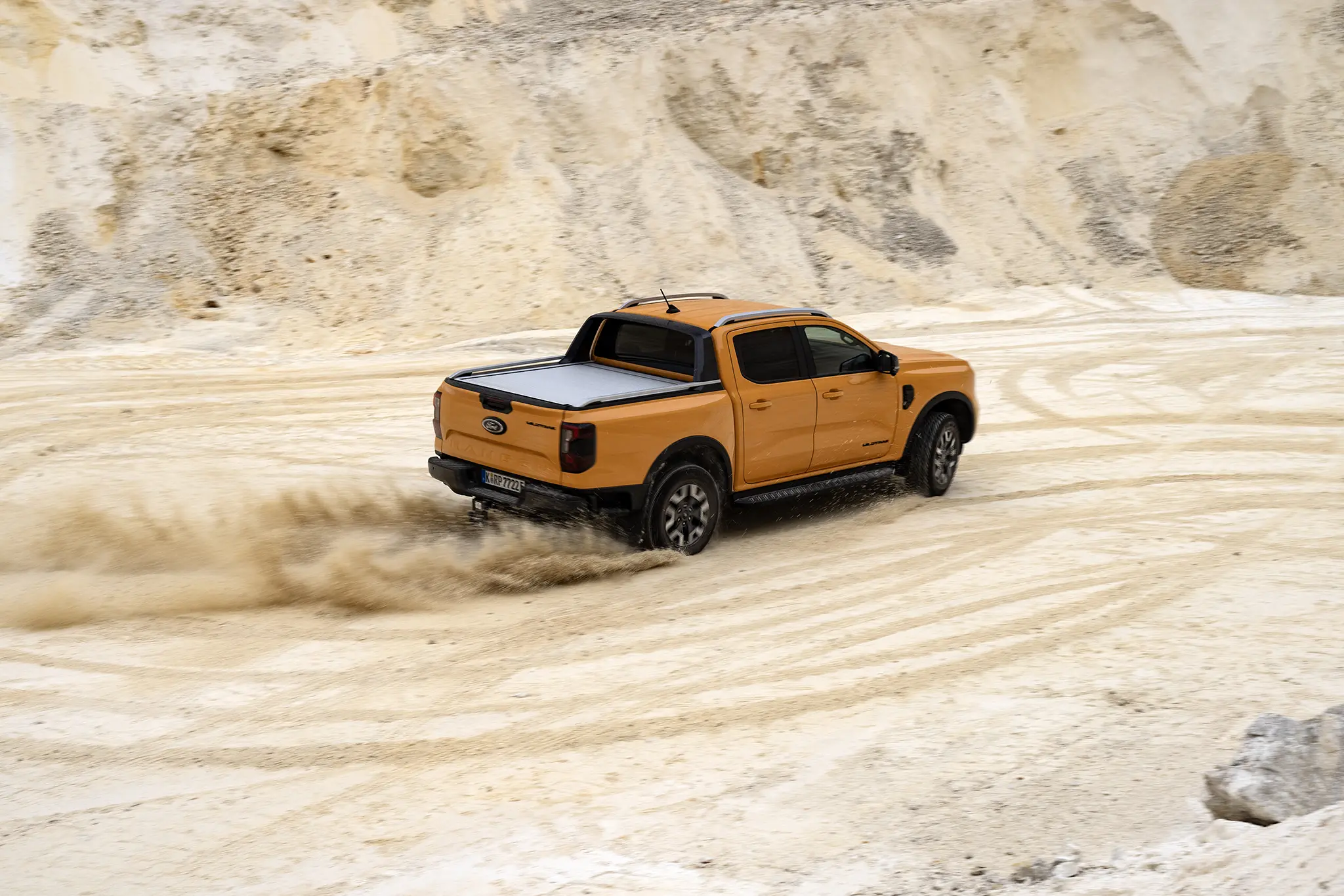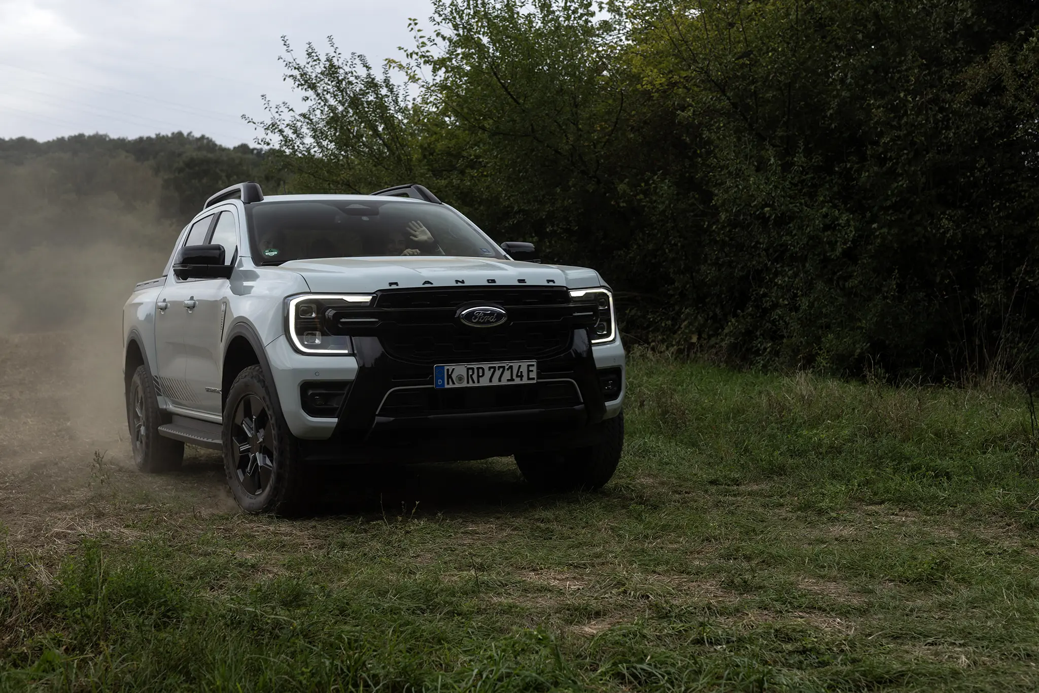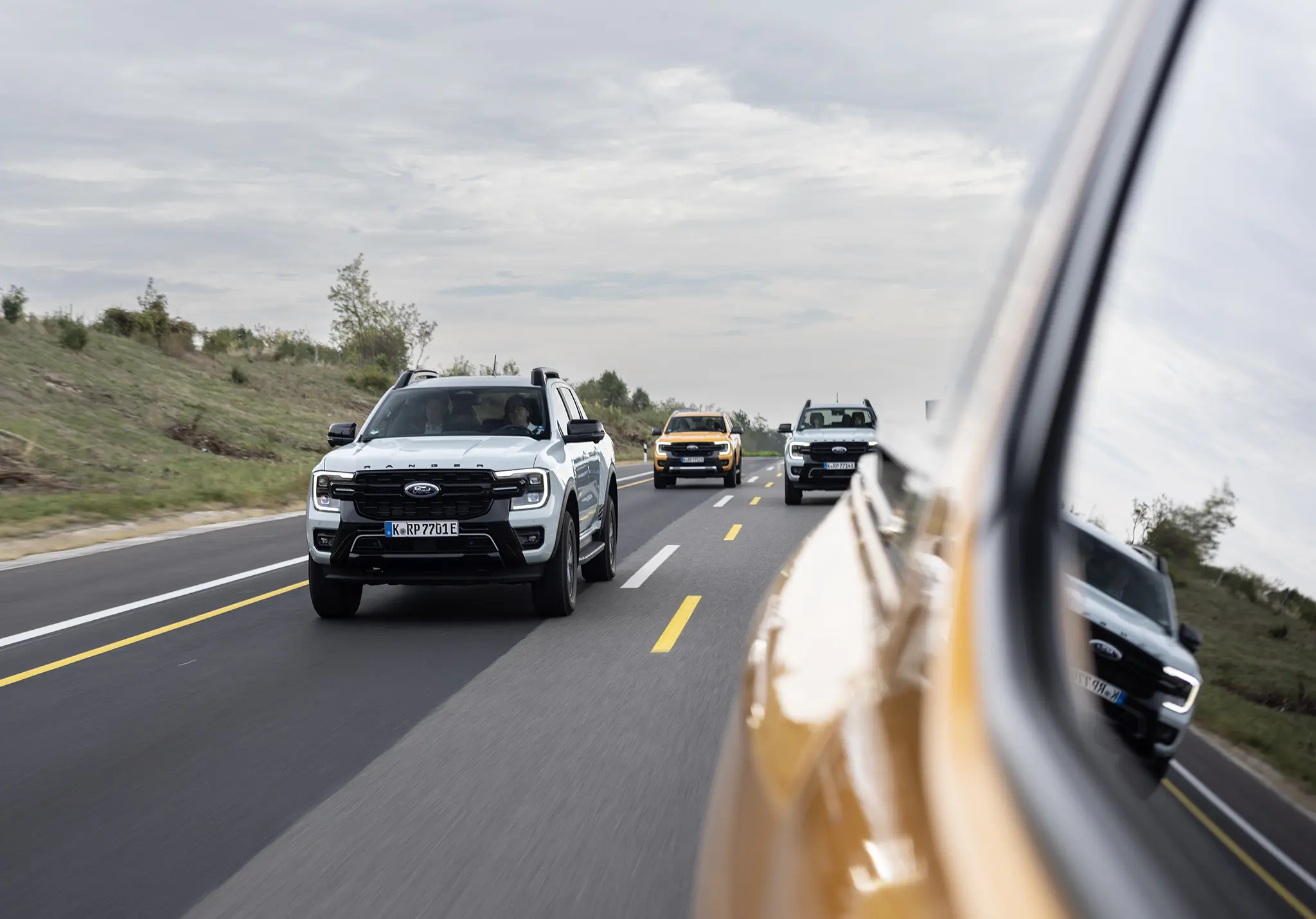 A hajtáslánc alapját a 2,3 literes, négyhengeres benzinmotor adja, ami a Focus ST-ből lehet ismerős. Ám a 10 fokozatú automatikus sebességváltóba beszereltek egy villanymotort. Ez a megoldás kifinomult és kényelmes működést eredményez. Amellett, hogy észrevétlenül vált a benzines és az elektromos hajtás között, az új megoldás azt is lehetővé teszi, hogy az alapáras kétzónás klímaberendezés továbbra is működjön az elektromos forrásról, amikor a start-stop rendszer egy piros lámpánál vagy az araszoló forgalomban leállítja a benzinmotort. A prémium fejhallgatókhoz hasonló aktív zajszűrés pedig a hajtás fajtájától függetlenül is rendkívül csendessé teszi az utasteret, főleg a dízel változatokhoz képest. A futóművet is a nagyobb tömeghez hangolták, de igazából nem érezni különbséget, sem közúton, sem terepen. A szokásos, létravázas konstrukciókra jellemző viselkedést mutat a Ranger.