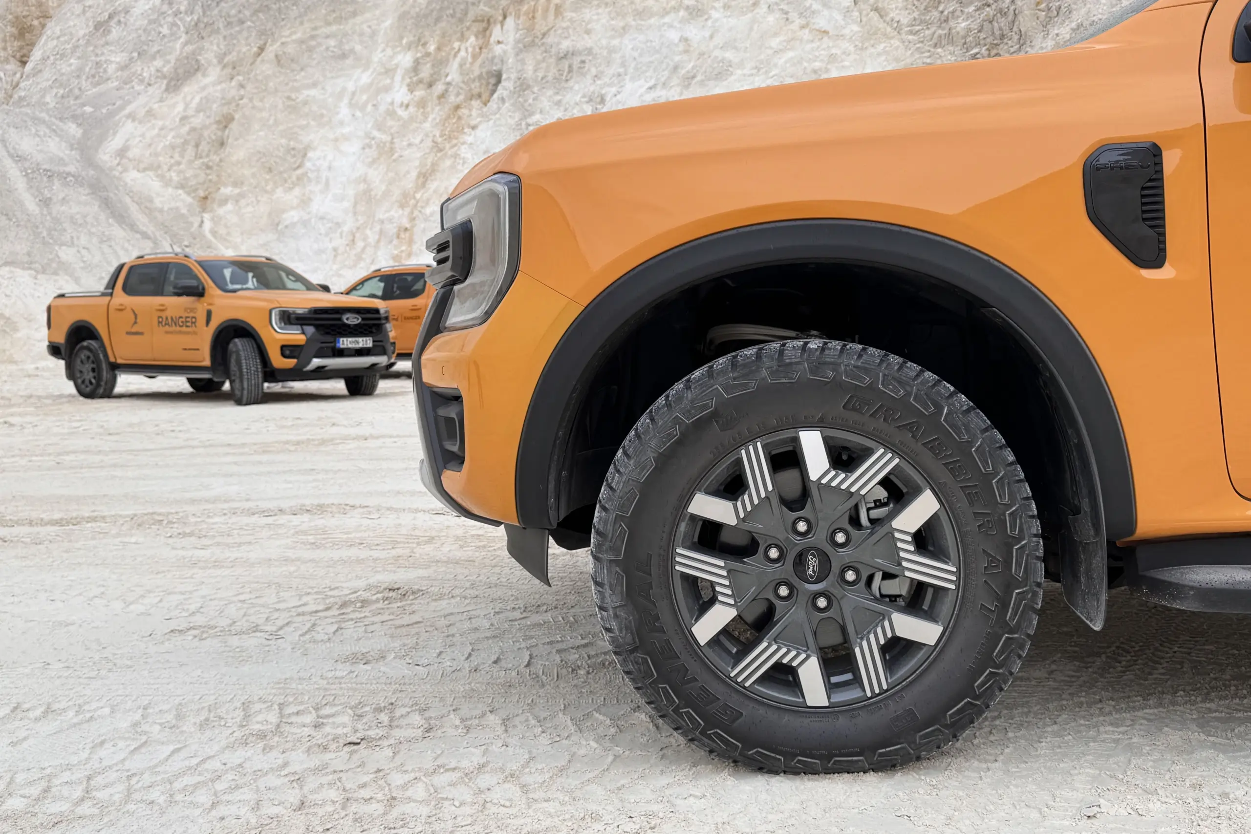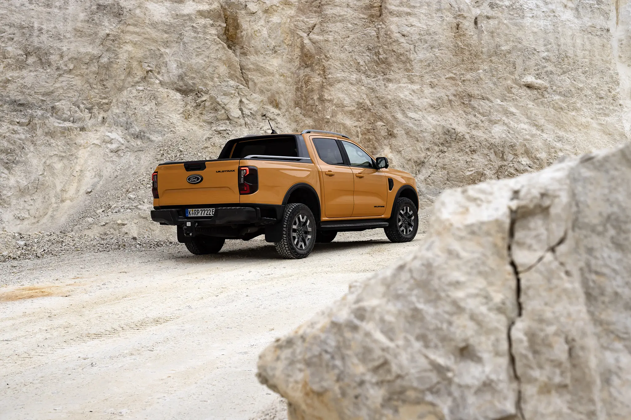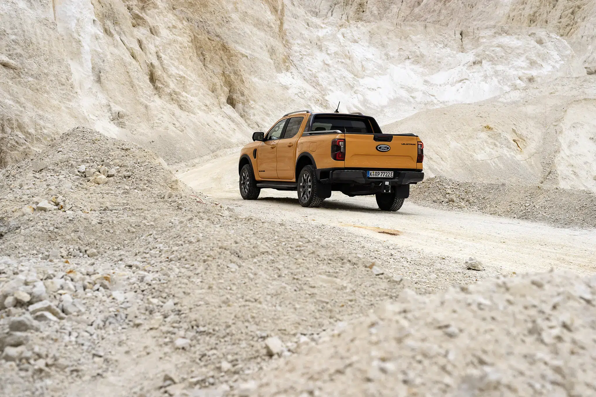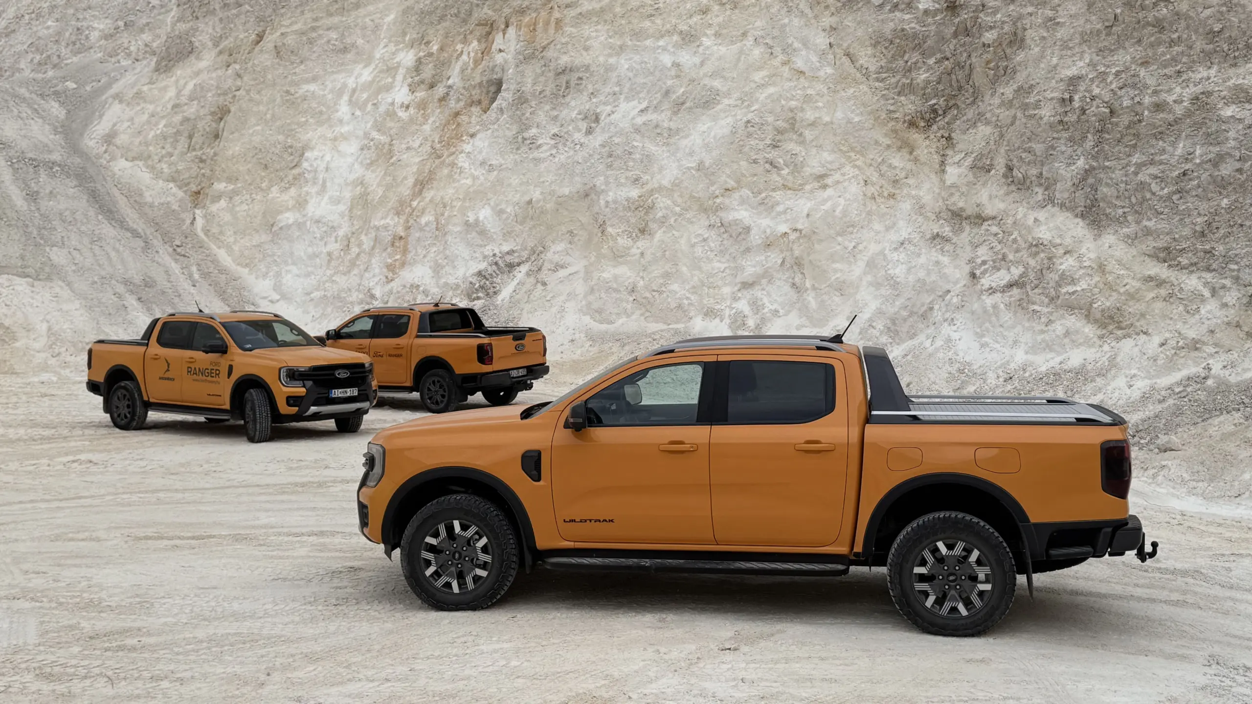 A hajtáslánc alapját a 2,3 literes, négyhengeres benzinmotor adja, ami a Focus ST-ből lehet ismerős. Ám a 10 fokozatú automatikus sebességváltóba beszereltek egy villanymotort. Ez a megoldás kifinomult és kényelmes működést eredményez. Amellett, hogy észrevétlenül vált a benzines és az elektromos hajtás között, az új megoldás azt is lehetővé teszi, hogy az alapáras kétzónás klímaberendezés továbbra is működjön az elektromos forrásról, amikor a start-stop rendszer egy piros lámpánál vagy az araszoló forgalomban leállítja a benzinmotort. A prémium fejhallgatókhoz hasonló aktív zajszűrés pedig a hajtás fajtájától függetlenül is rendkívül csendessé teszi az utasteret, főleg a dízel változatokhoz képest. A futóművet is a nagyobb tömeghez hangolták, de igazából nem érezni különbséget, sem közúton, sem terepen. A szokásos, létravázas konstrukciókra jellemző viselkedést mutat a Ranger.